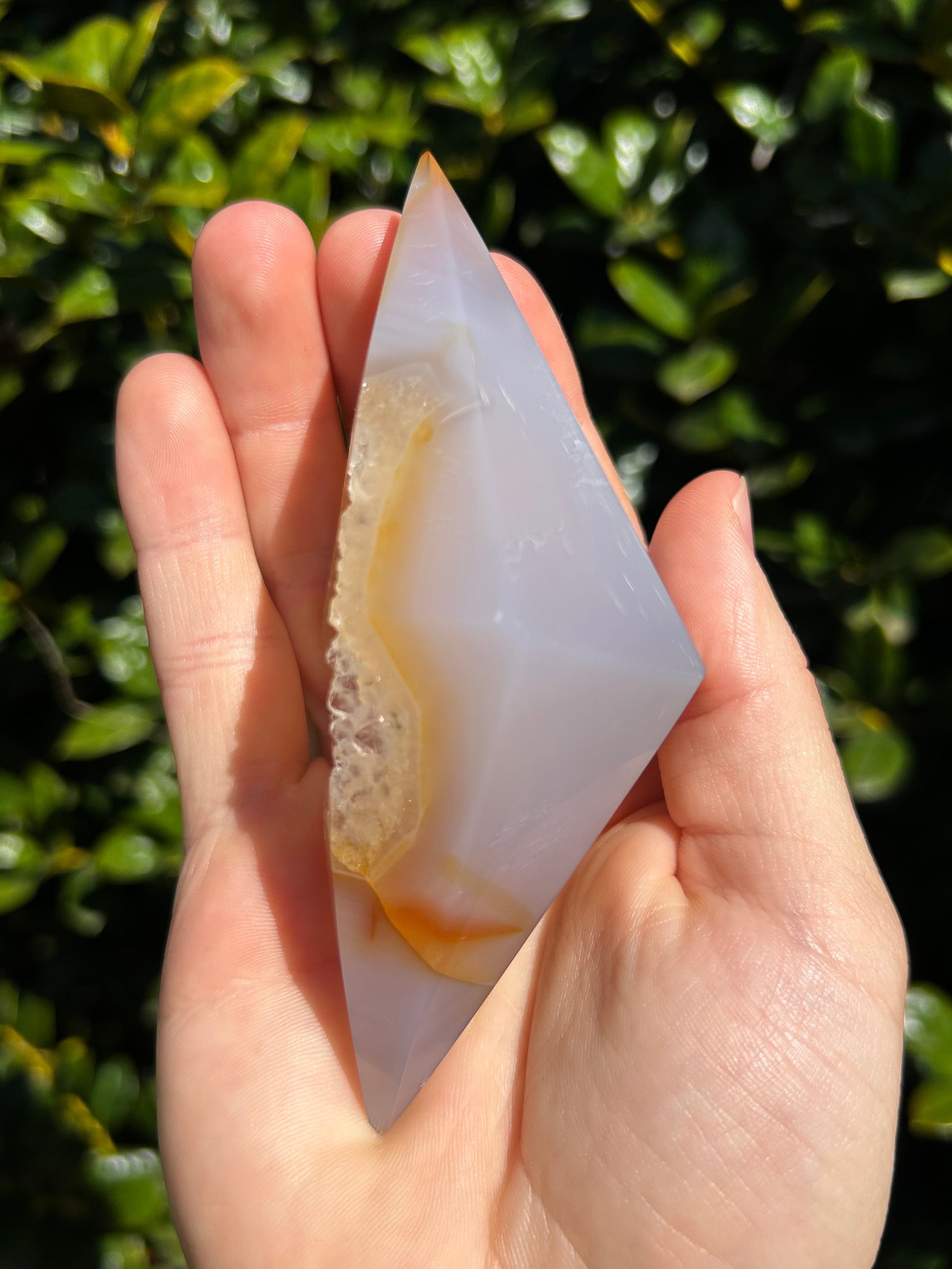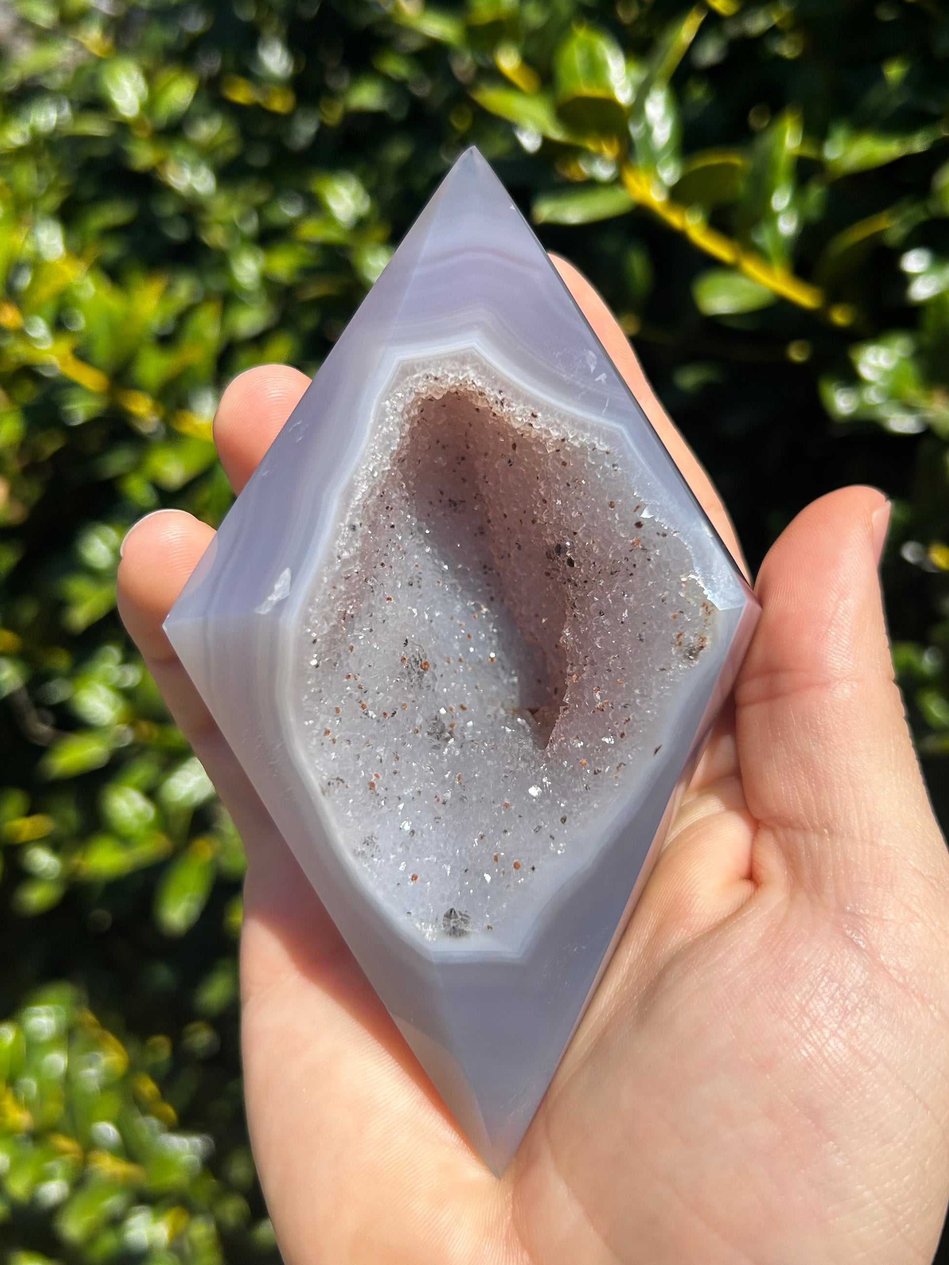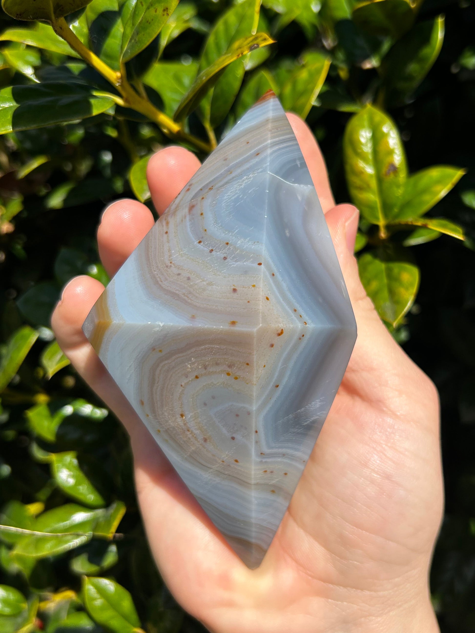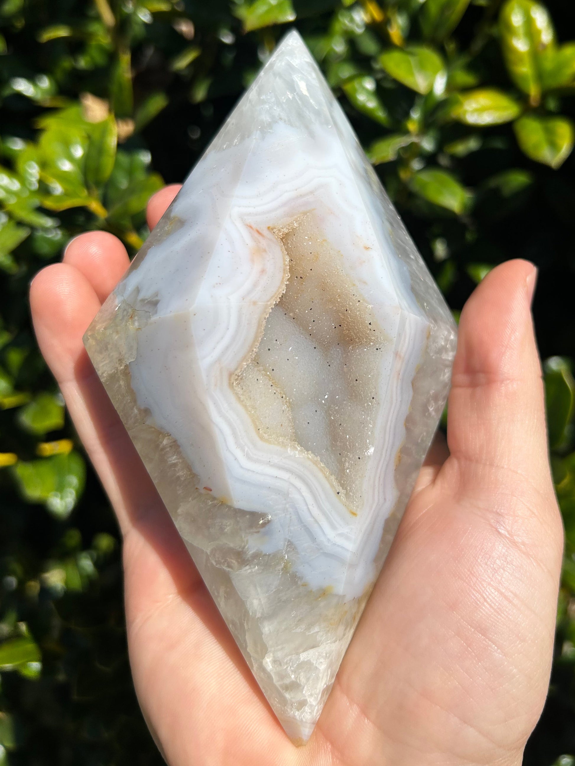El ágata es conocida por su energía estabilizadora, motivadora y estabilizadora. Se dice que armoniza la energía yin y yang del interior. El ágata anima al usuario a conectarse con su intuición, lo que aumenta la confianza en sí mismo. También proporciona un escudo protector alrededor del cuerpo que bloquea la energía negativa. Este diamante de ágata es la pieza perfecta para conectarte con tu intuición y recordarte la fuerza de tu sabiduría.