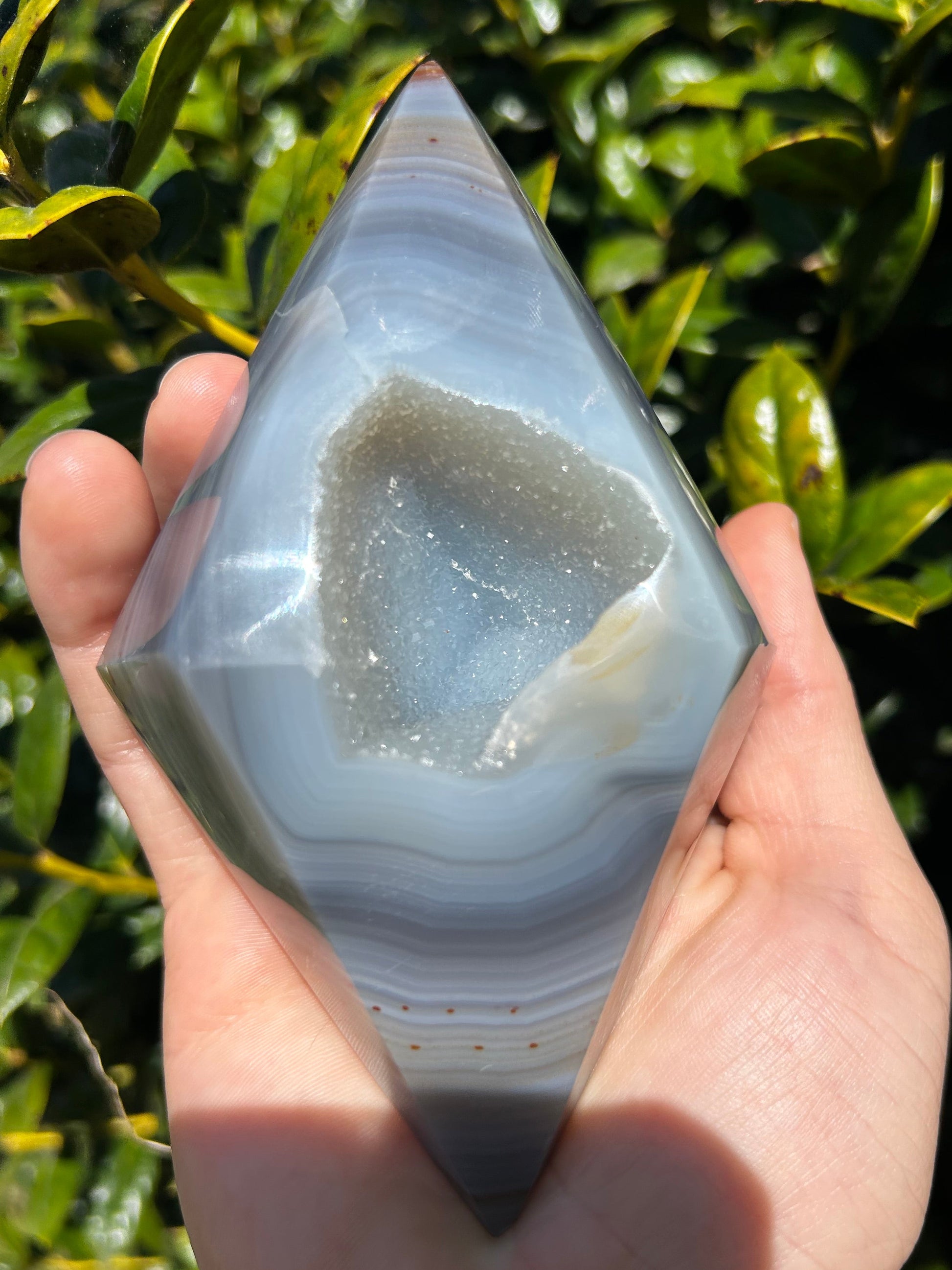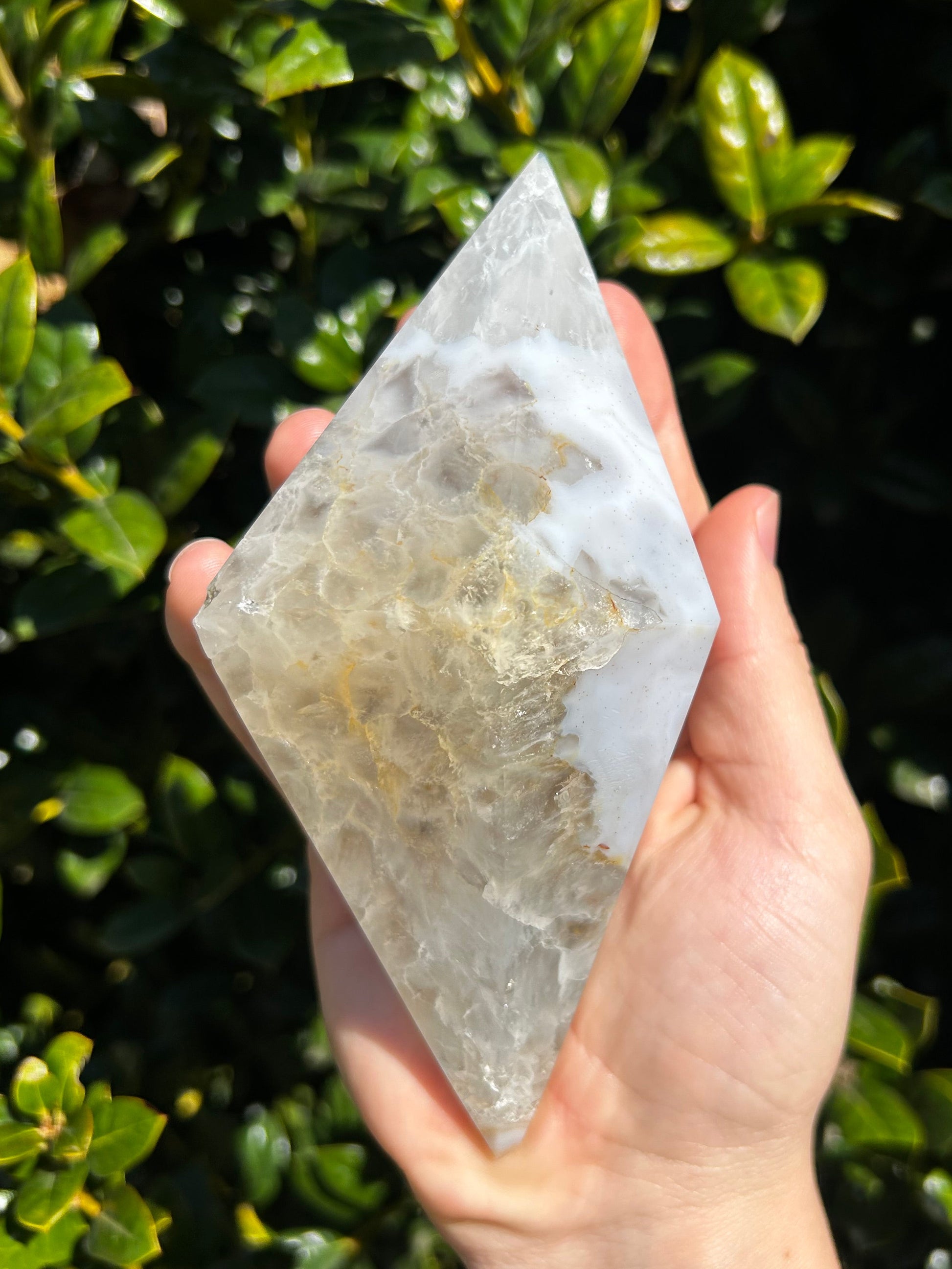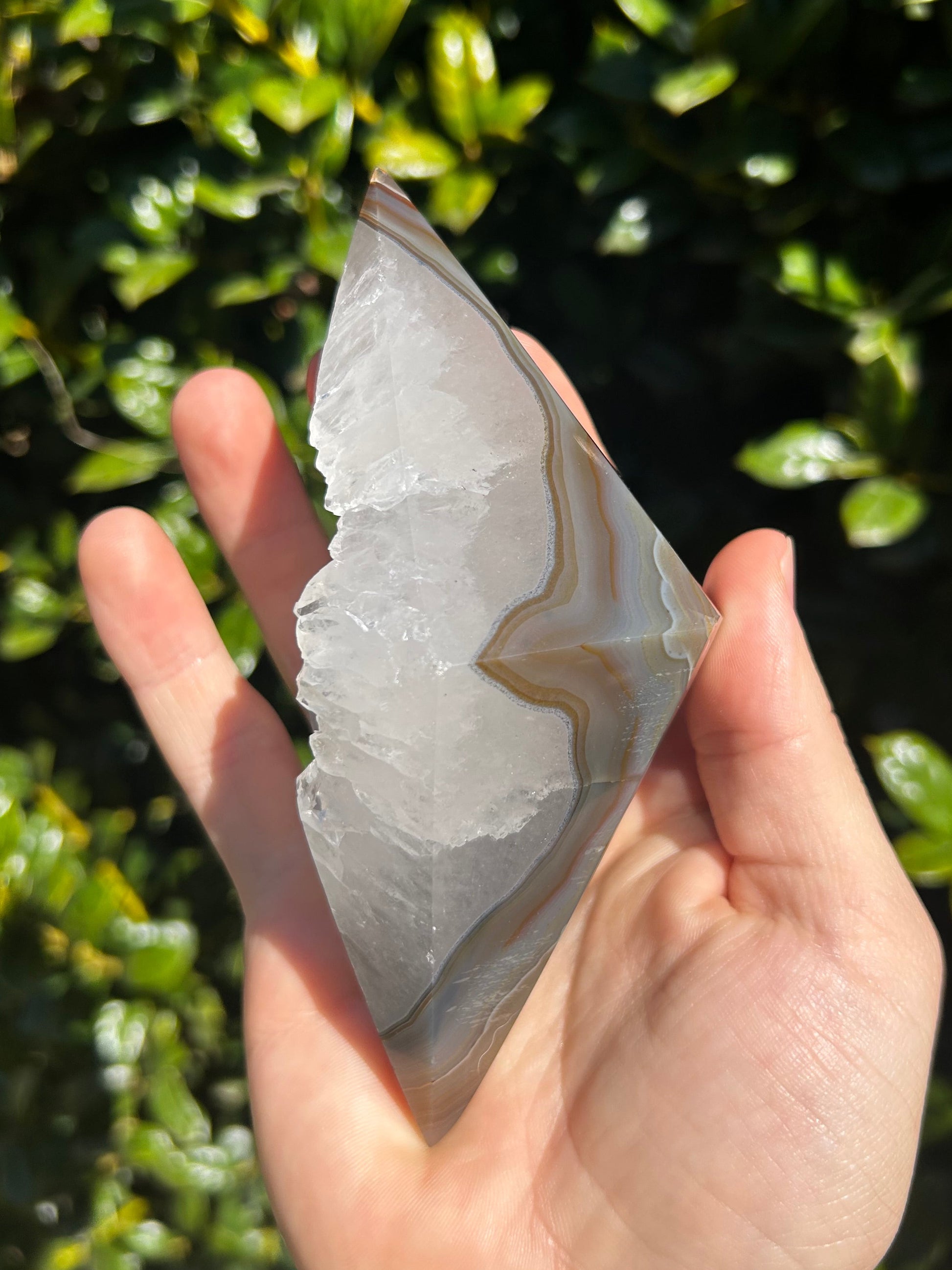 El ágata es conocida por su energía estabilizadora, motivadora y estabilizadora. Se dice que armoniza la energía yin y yang del interior. El ágata anima al usuario a conectarse con su intuición, lo que aumenta la confianza en sí mismo. También proporciona un escudo protector alrededor del cuerpo que bloquea la energía negativa. Este diamante de ágata es la pieza perfecta para conectarte con tu intuición y recordarte la fuerza de tu sabiduría.