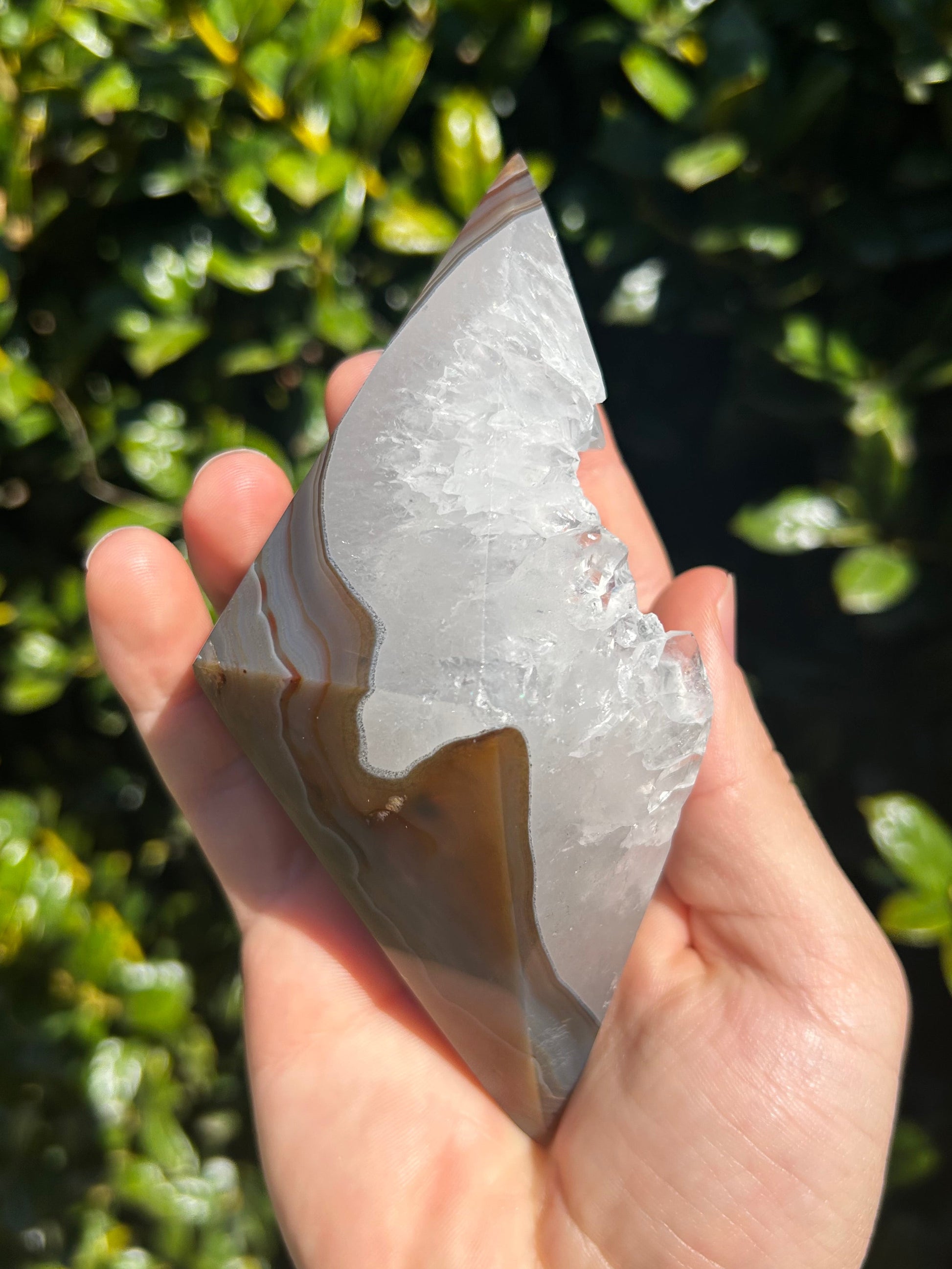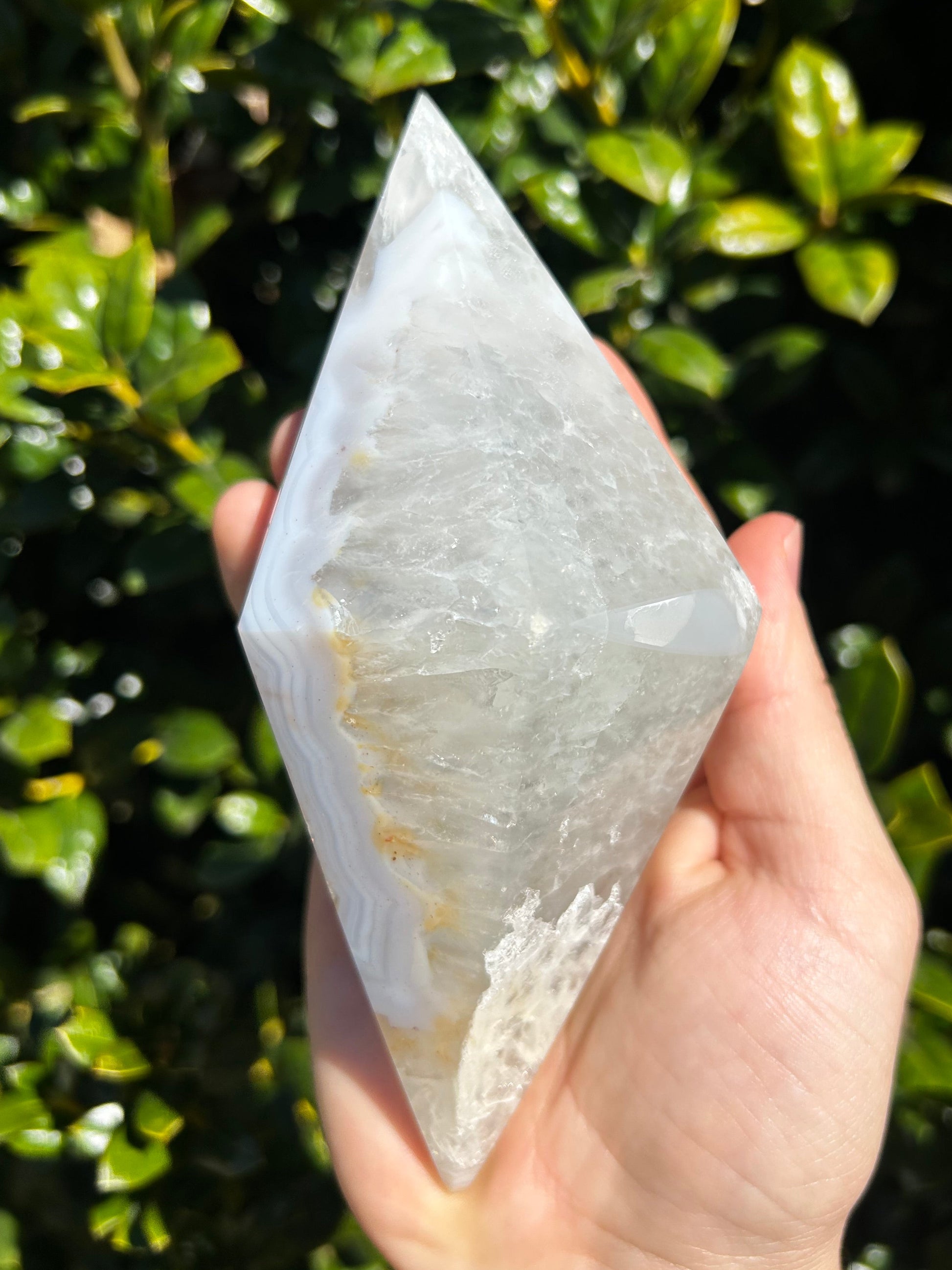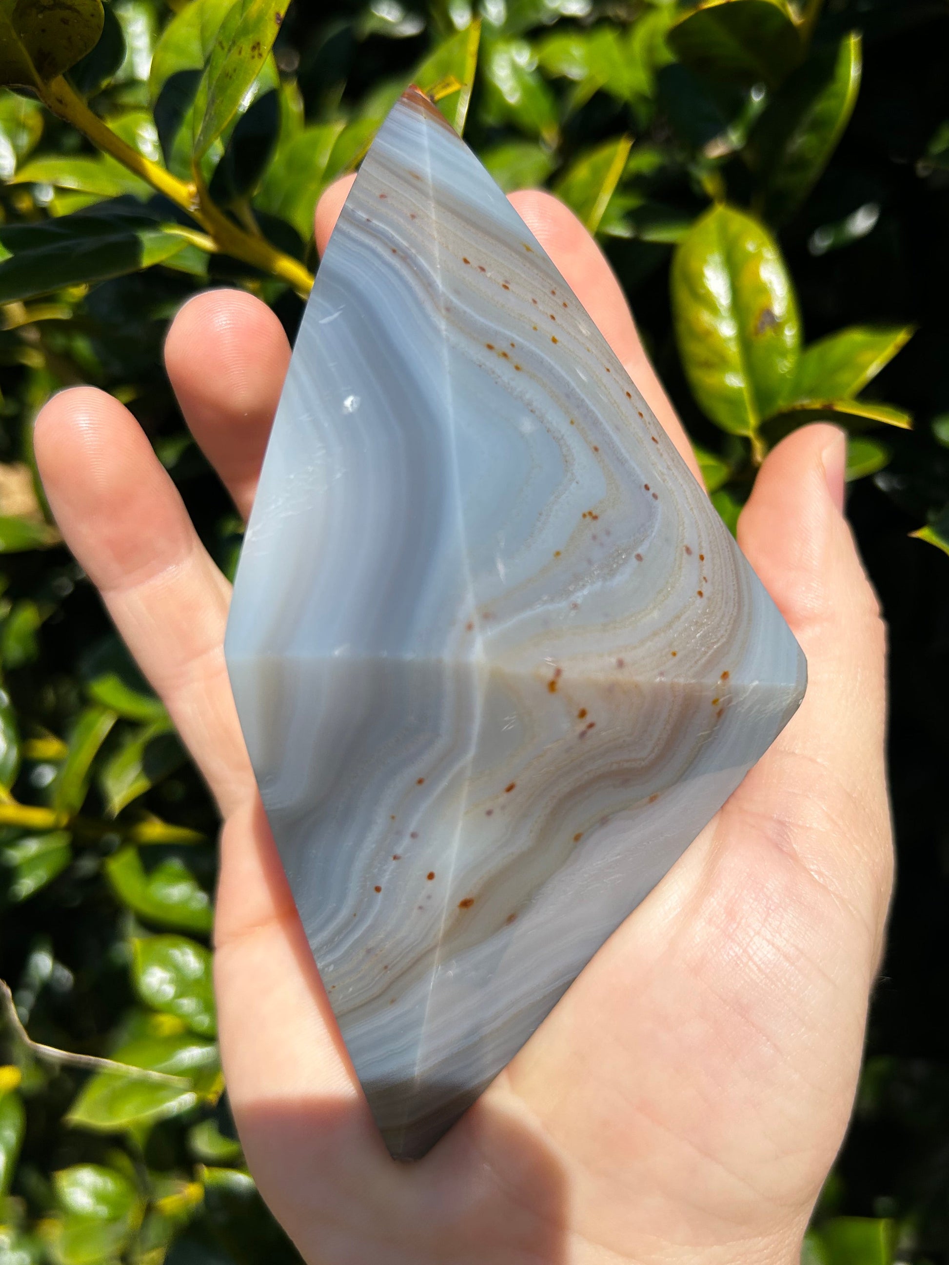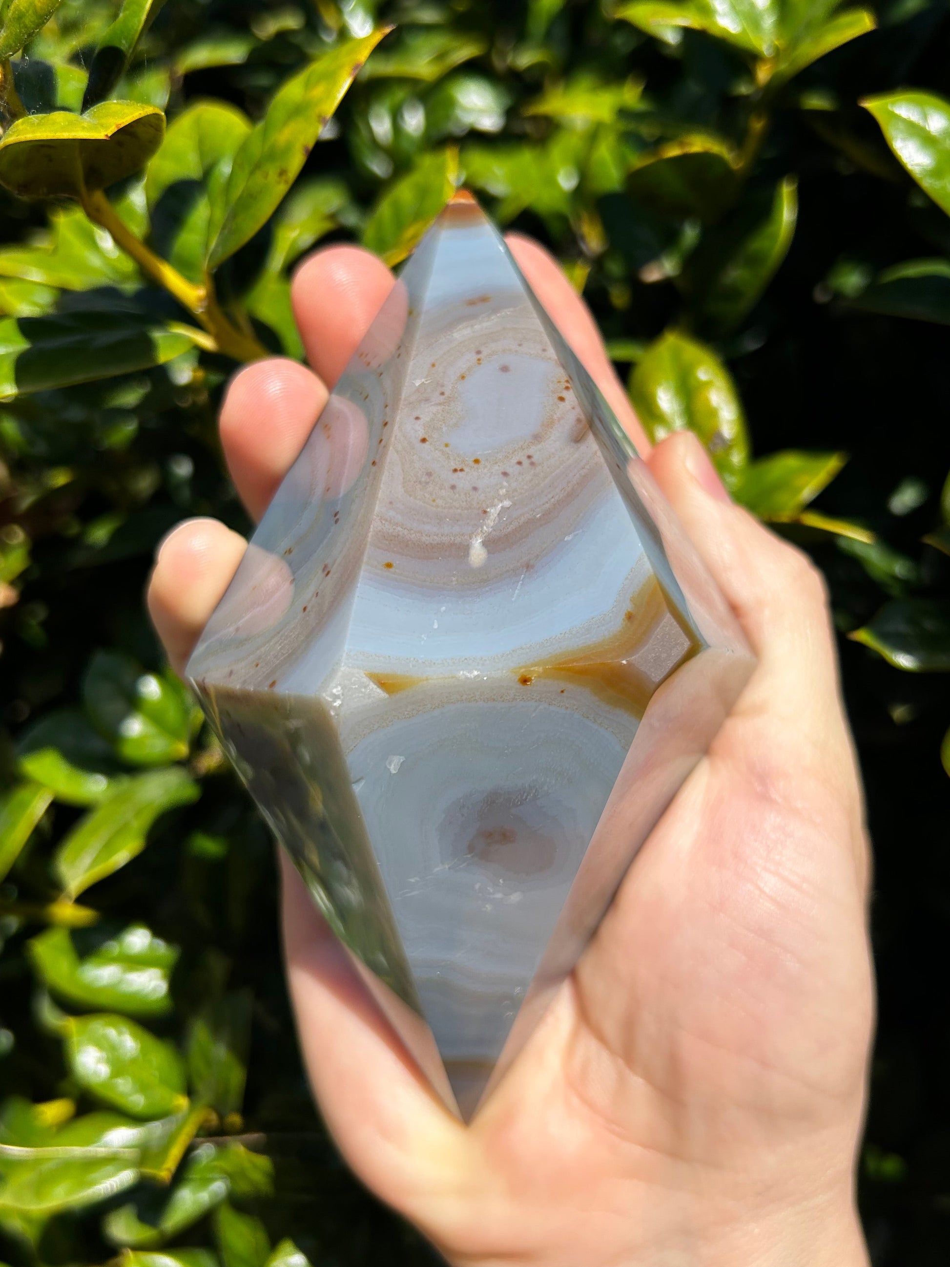 El ágata es conocida por su energía estabilizadora, motivadora y estabilizadora. Se dice que armoniza la energía yin y yang del interior. El ágata anima al usuario a conectarse con su intuición, lo que aumenta la confianza en sí mismo. También proporciona un escudo protector alrededor del cuerpo que bloquea la energía negativa. Este diamante de ágata es la pieza perfecta para conectarte con tu intuición y recordarte la fuerza de tu sabiduría.