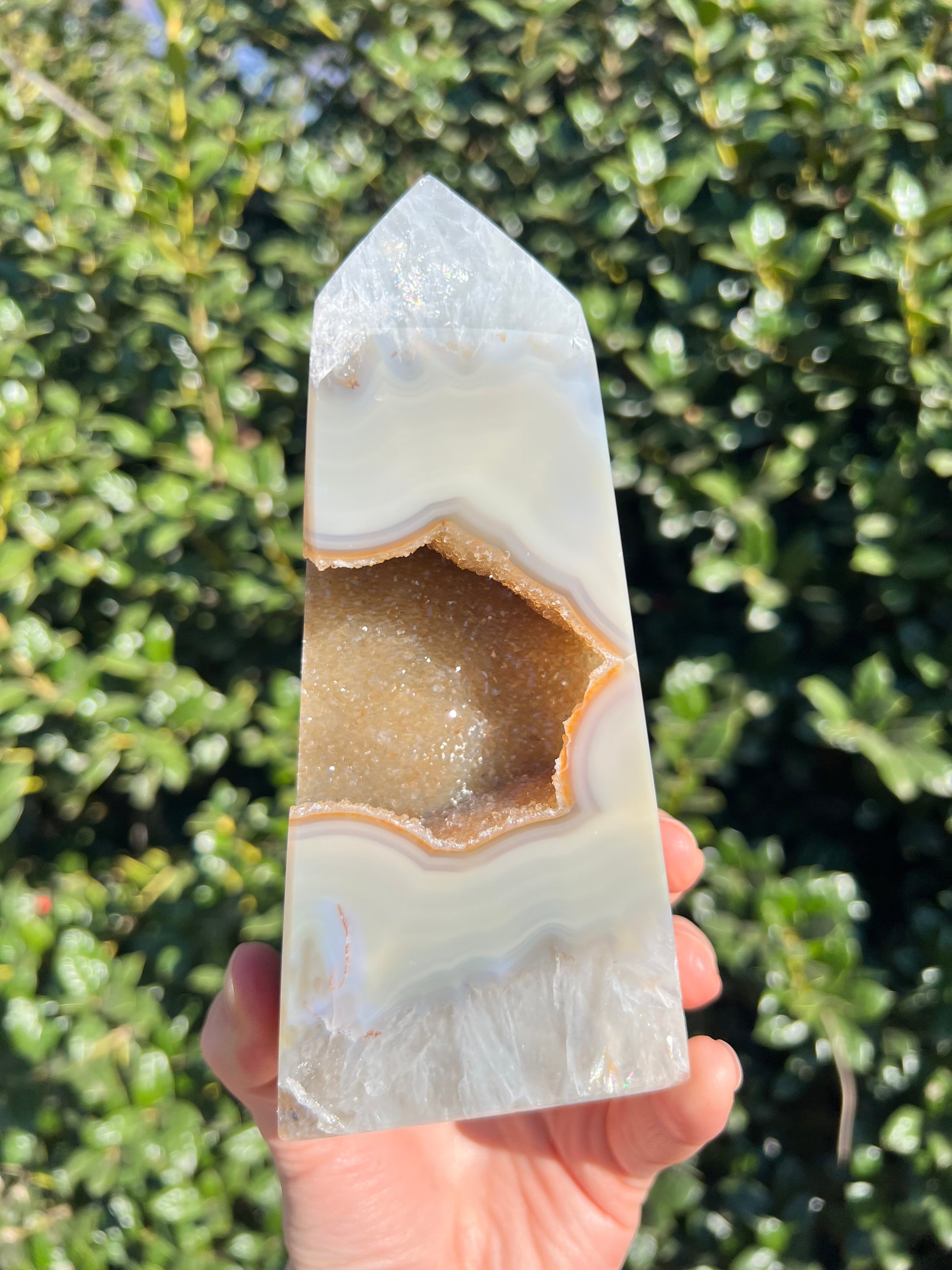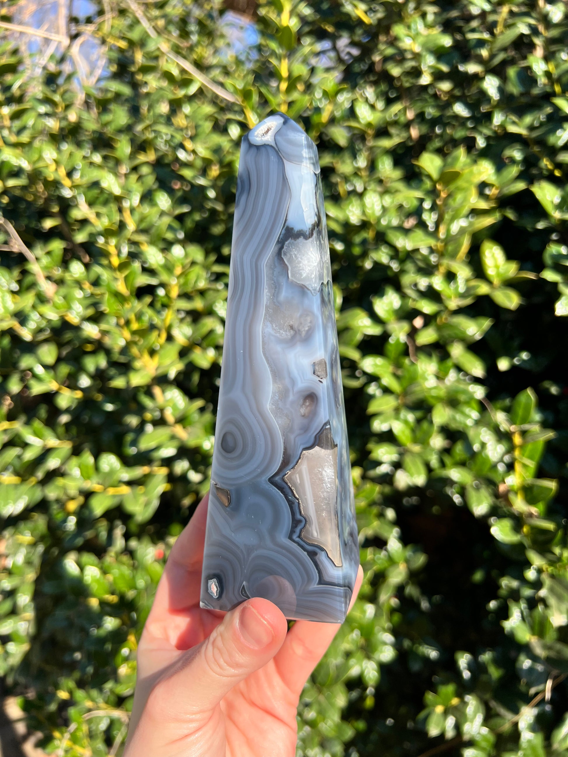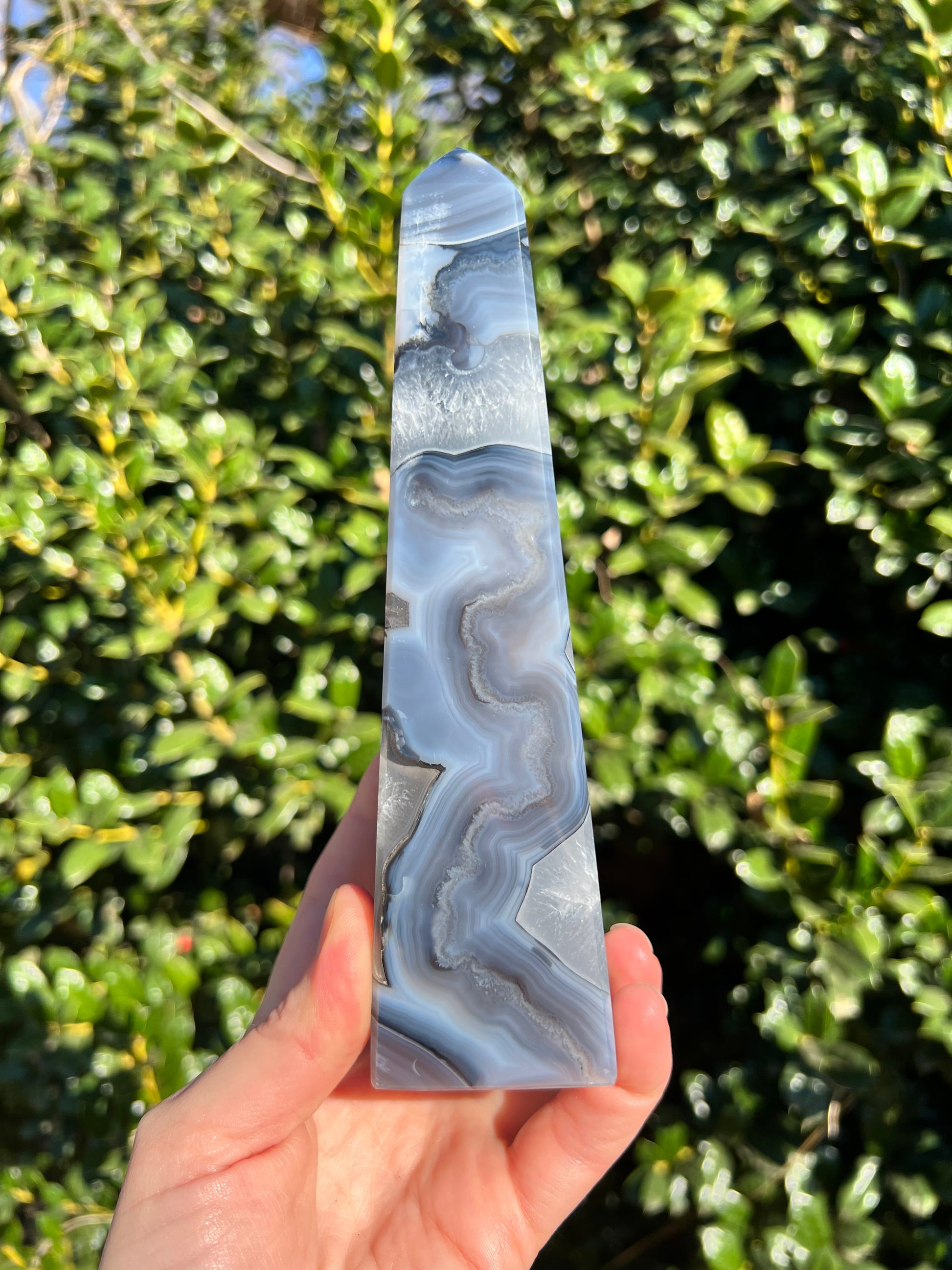 Agate is known for its grounding, stabilizing, and encouraging energy. Agate is said to harmonize the yin and yang energy within. Agate encourages the user to connect with their intuition, increasing self-confidence. It also provides a protective shield around the body that blocks negative energy. These Agate Obelisks are the perfect pieces to connect you to your intuition and remind you of the strength of your wisdom.