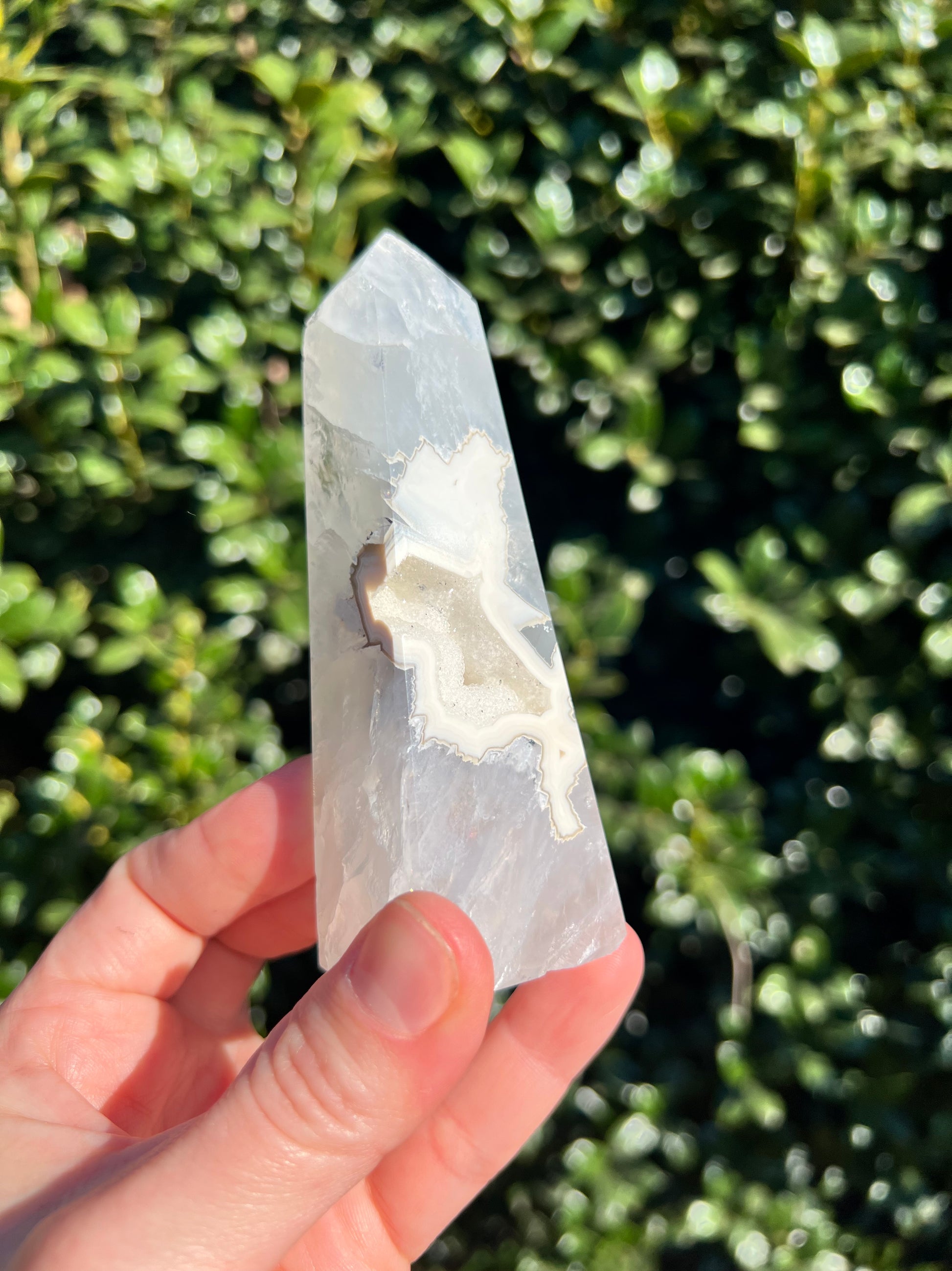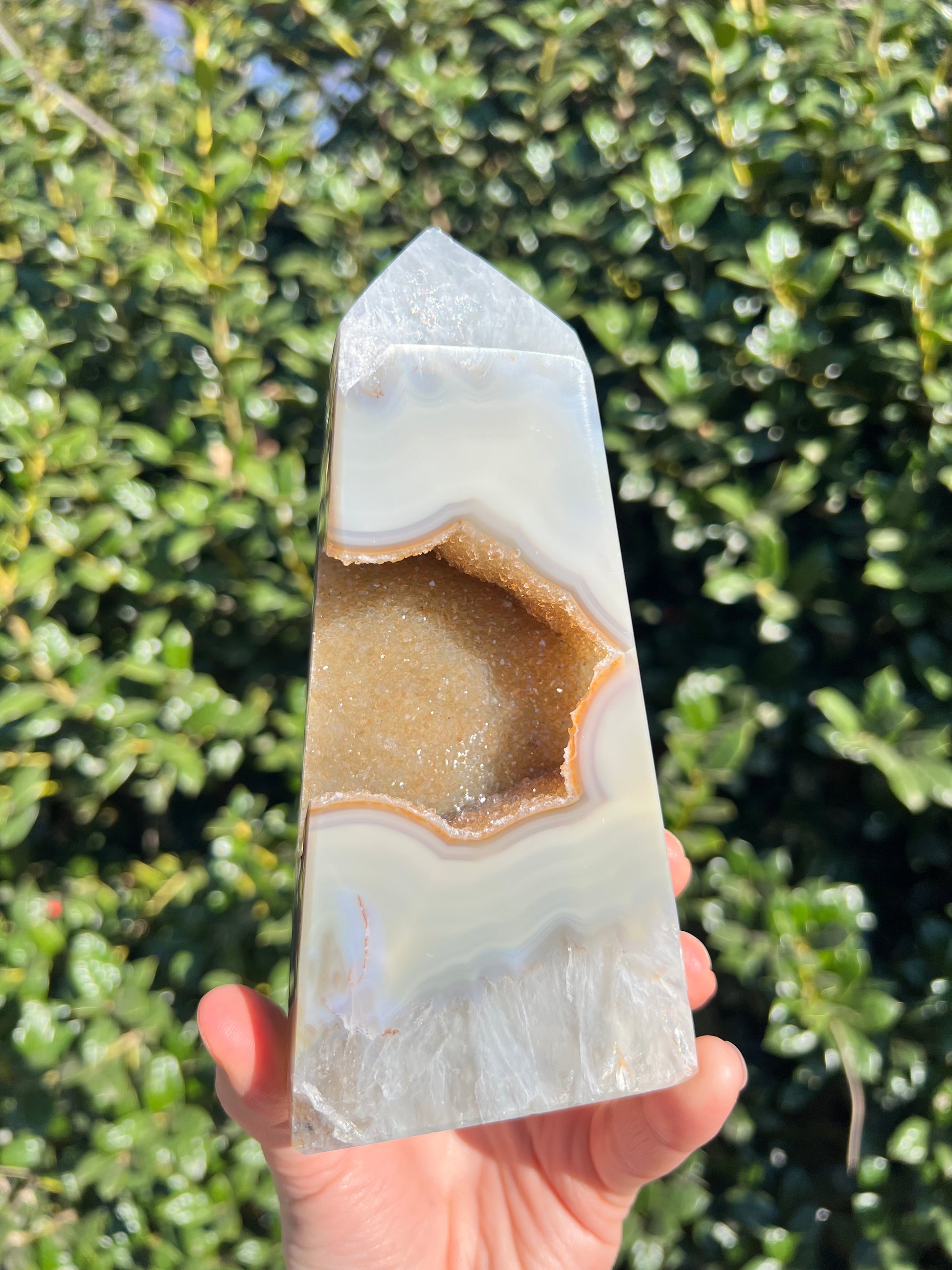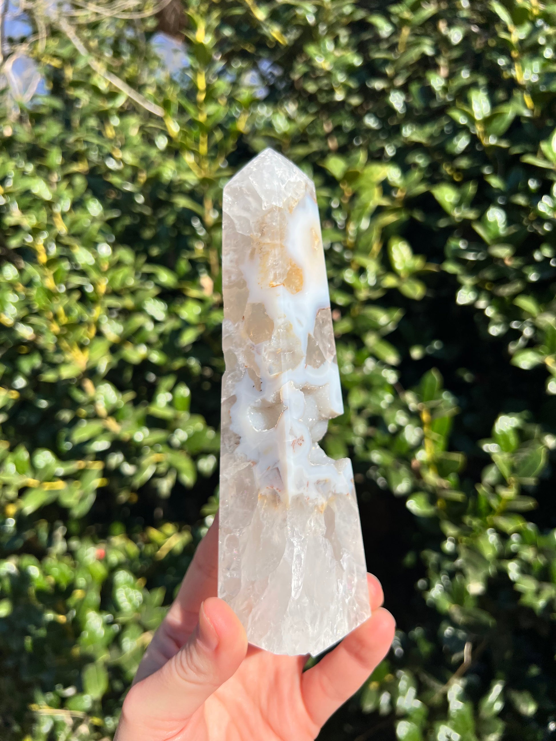 Agate is known for its grounding, stabilizing, and encouraging energy. Agate is said to harmonize the yin and yang energy within. Agate encourages the user to connect with their intuition, increasing self-confidence. It also provides a protective shield around the body that blocks negative energy. These Agate Obelisks are the perfect pieces to connect you to your intuition and remind you of the strength of your wisdom.