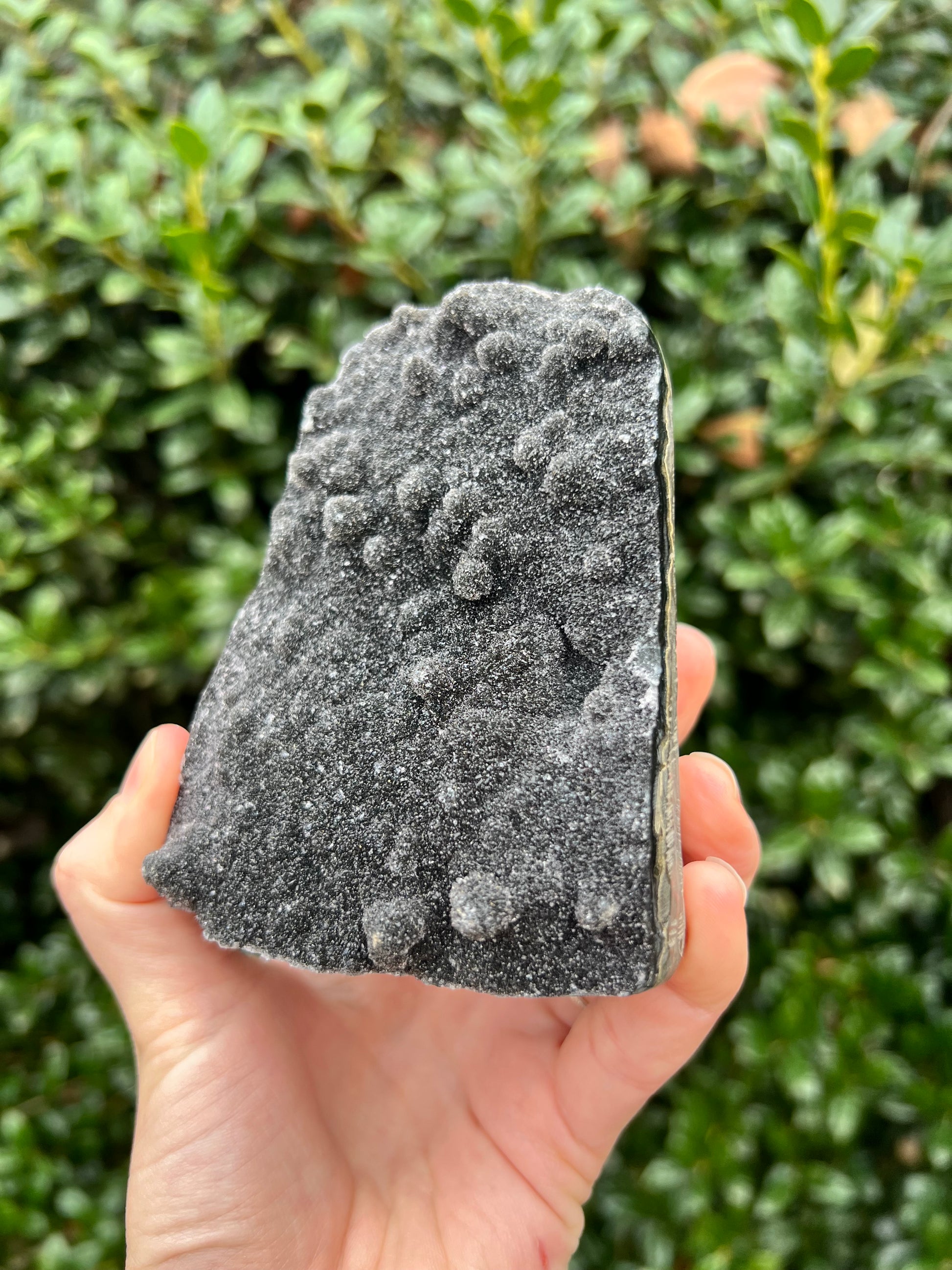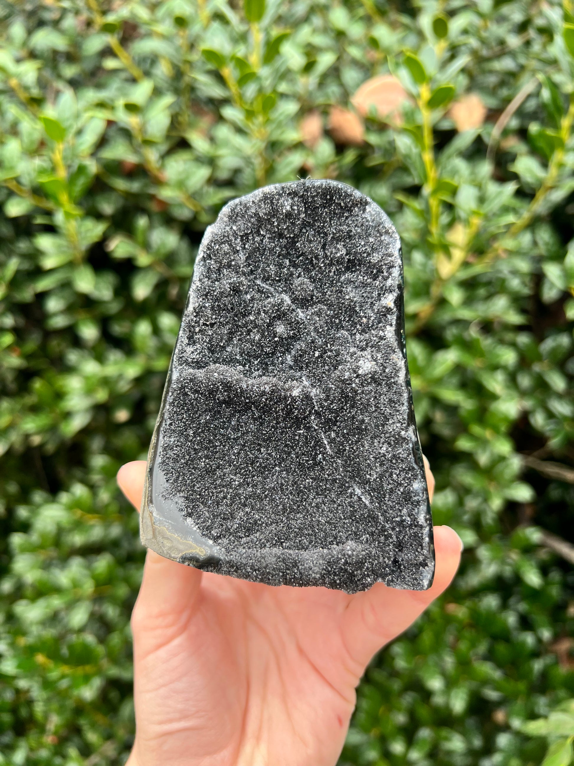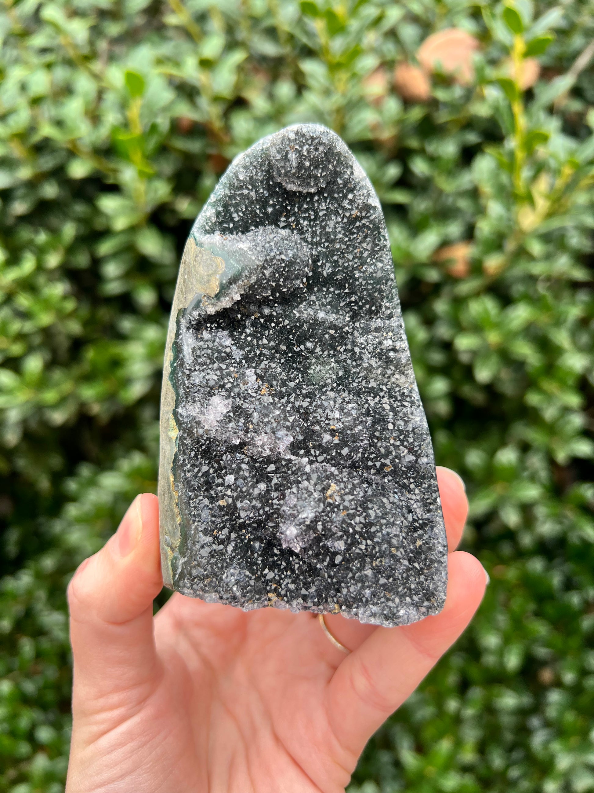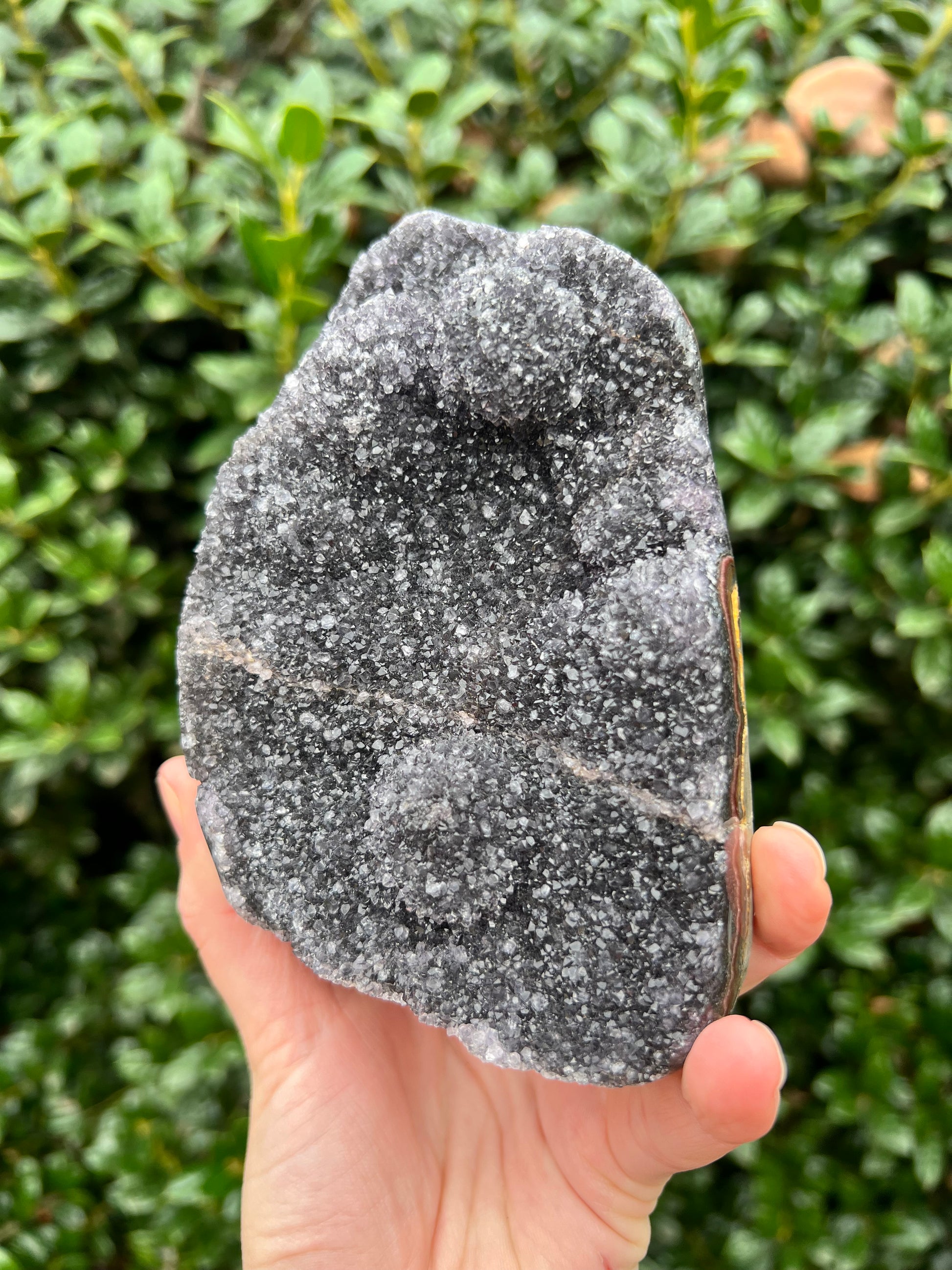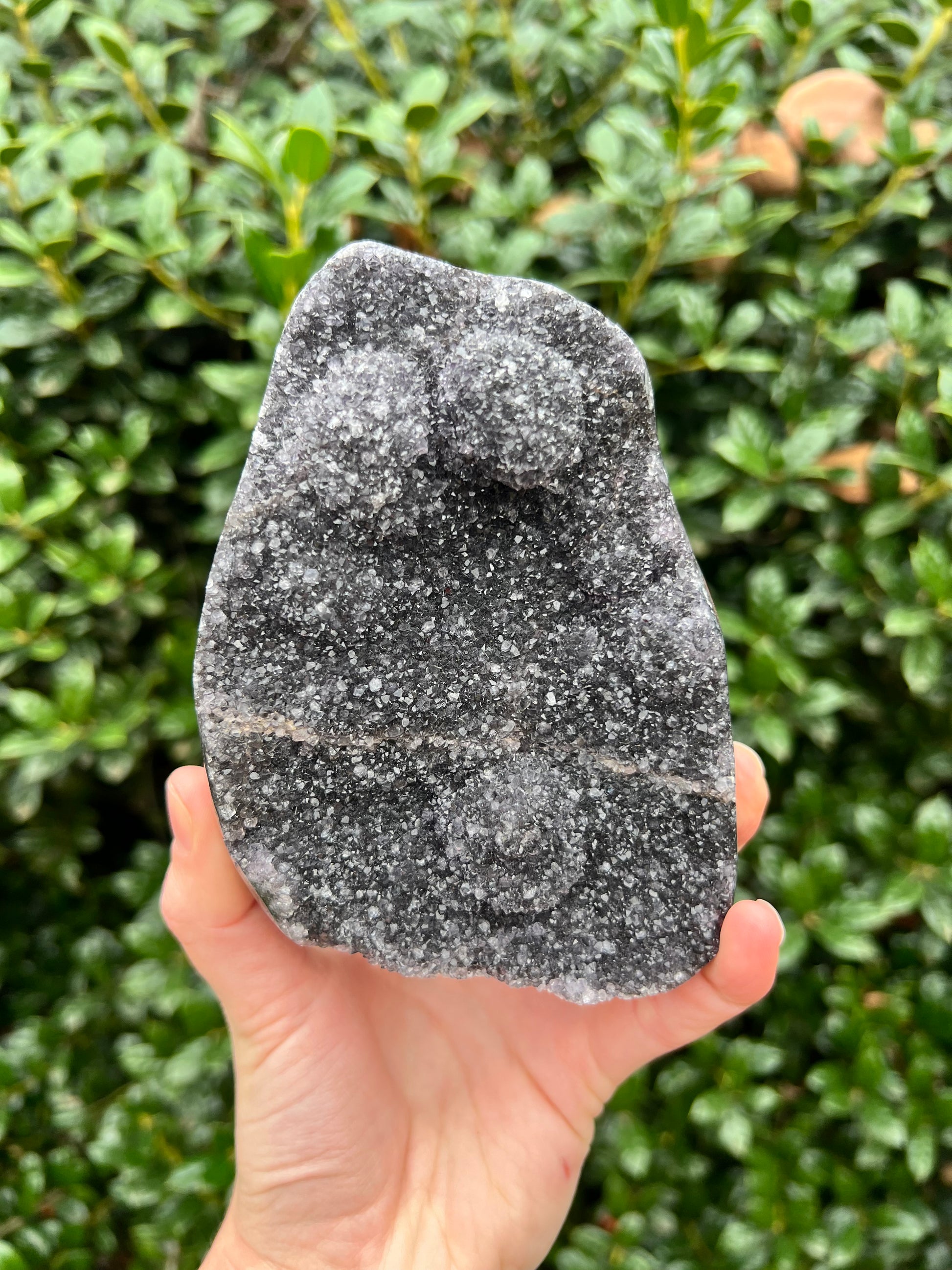 These stunning Black Amethyst Cut Bases are exquisite creations of Nature! They are perfect for healing home decor! This Black Amethyst comes from Brazil, which is known for its abundant Amethyst deposits. Amethyst is regarded as a powerful healer of emotional and spiritual wounds. It is known to promote relaxation and balance, helping to alleviate stress and anxiety. Black Amethyst is genuine Amethyst with higher levels of Hematite and Iron inclusions, resulting in its black color. These inclusions bring protective and shielding energy to the stone. Recenter and heal your energy with our Black Amethyst Cut Bases!