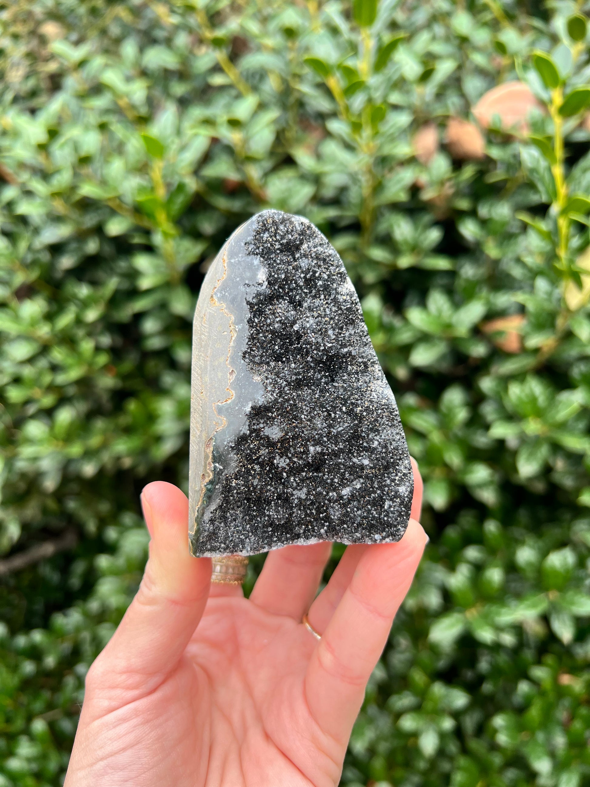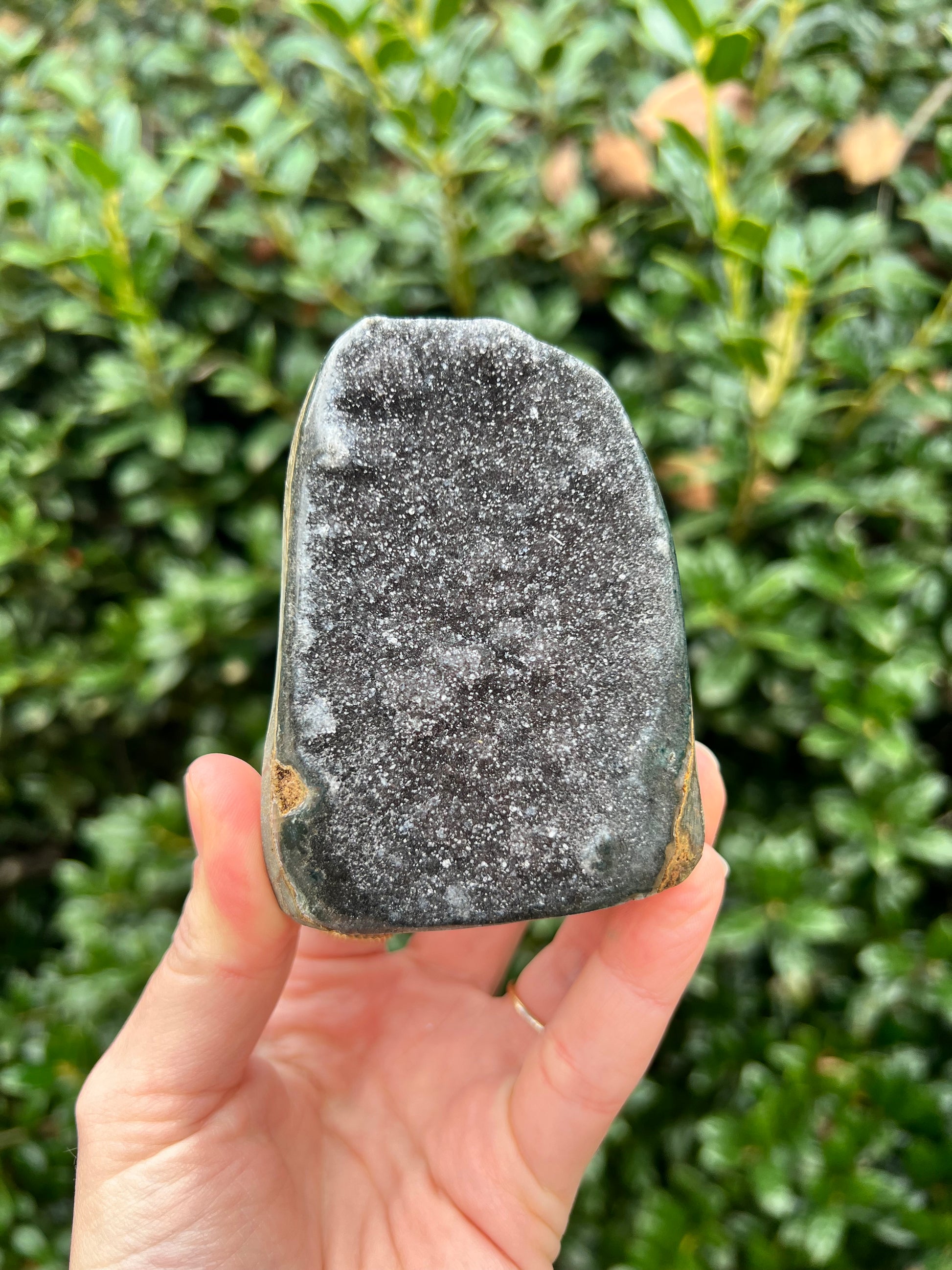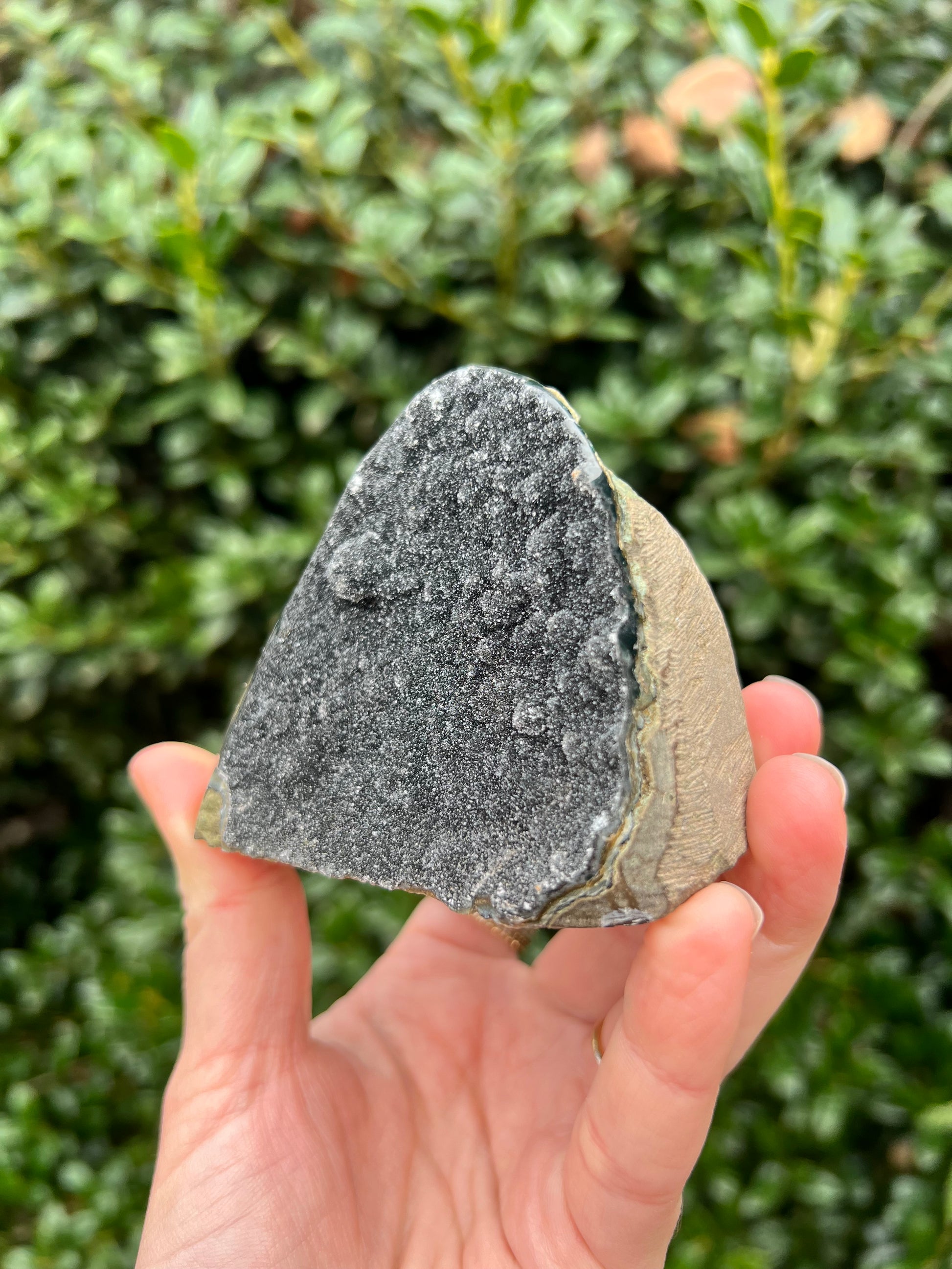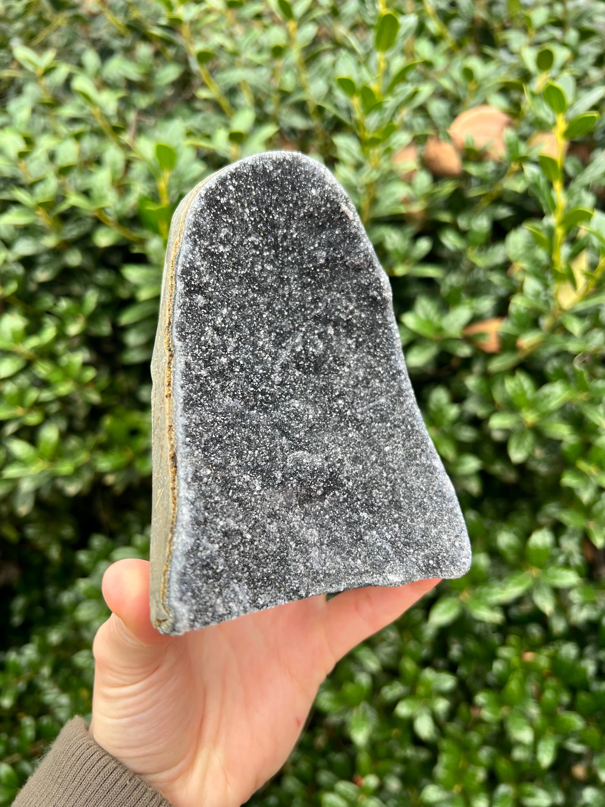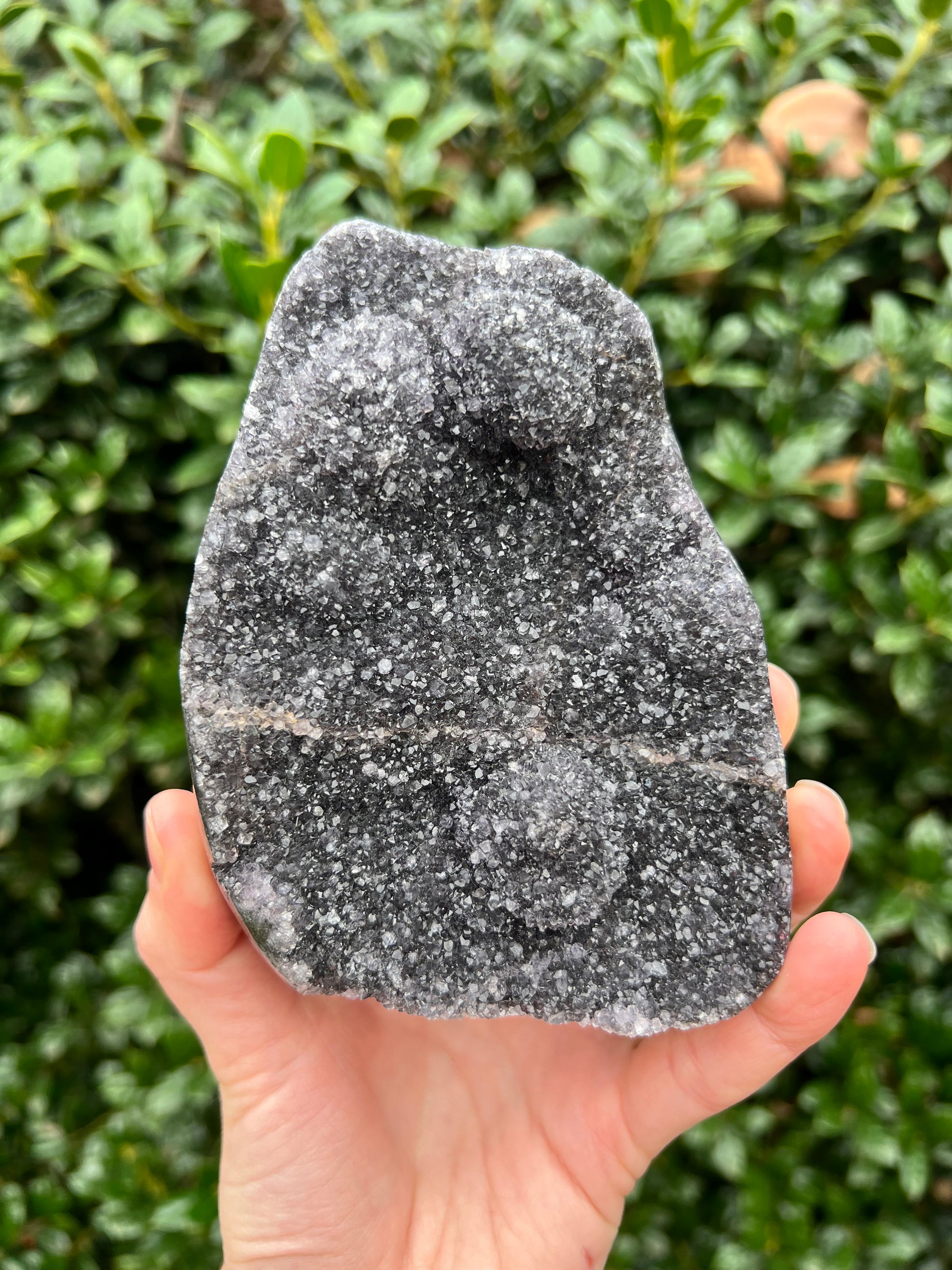These stunning Black Amethyst Cut Bases are exquisite creations of Nature! They are perfect for healing home decor! This Black Amethyst comes from Brazil, which is known for its abundant Amethyst deposits. Amethyst is regarded as a powerful healer of emotional and spiritual wounds. It is known to promote relaxation and balance, helping to alleviate stress and anxiety. Black Amethyst is genuine Amethyst with higher levels of Hematite and Iron inclusions, resulting in its black color. These inclusions bring protective and shielding energy to the stone. Recenter and heal your energy with our Black Amethyst Cut Bases!