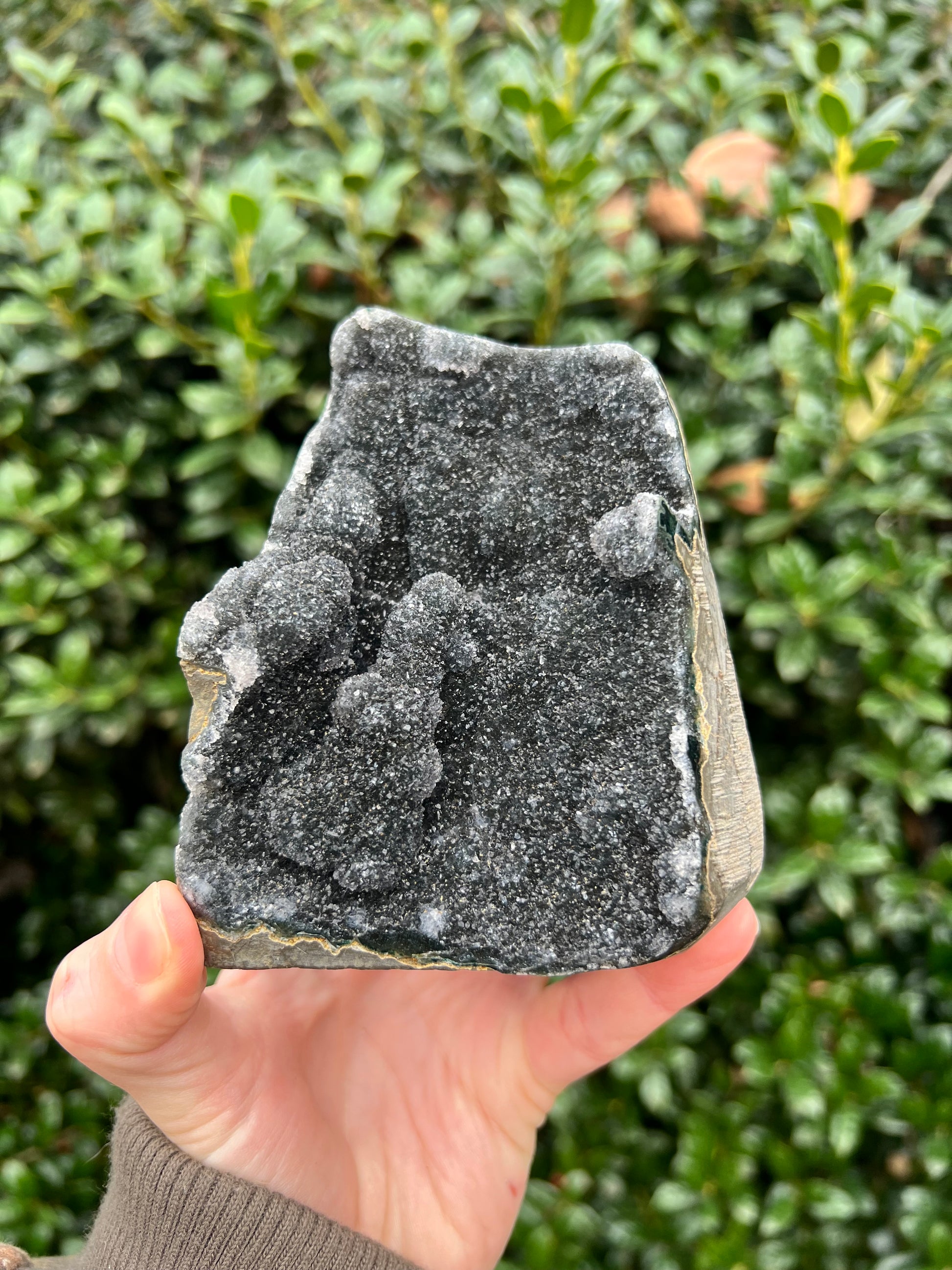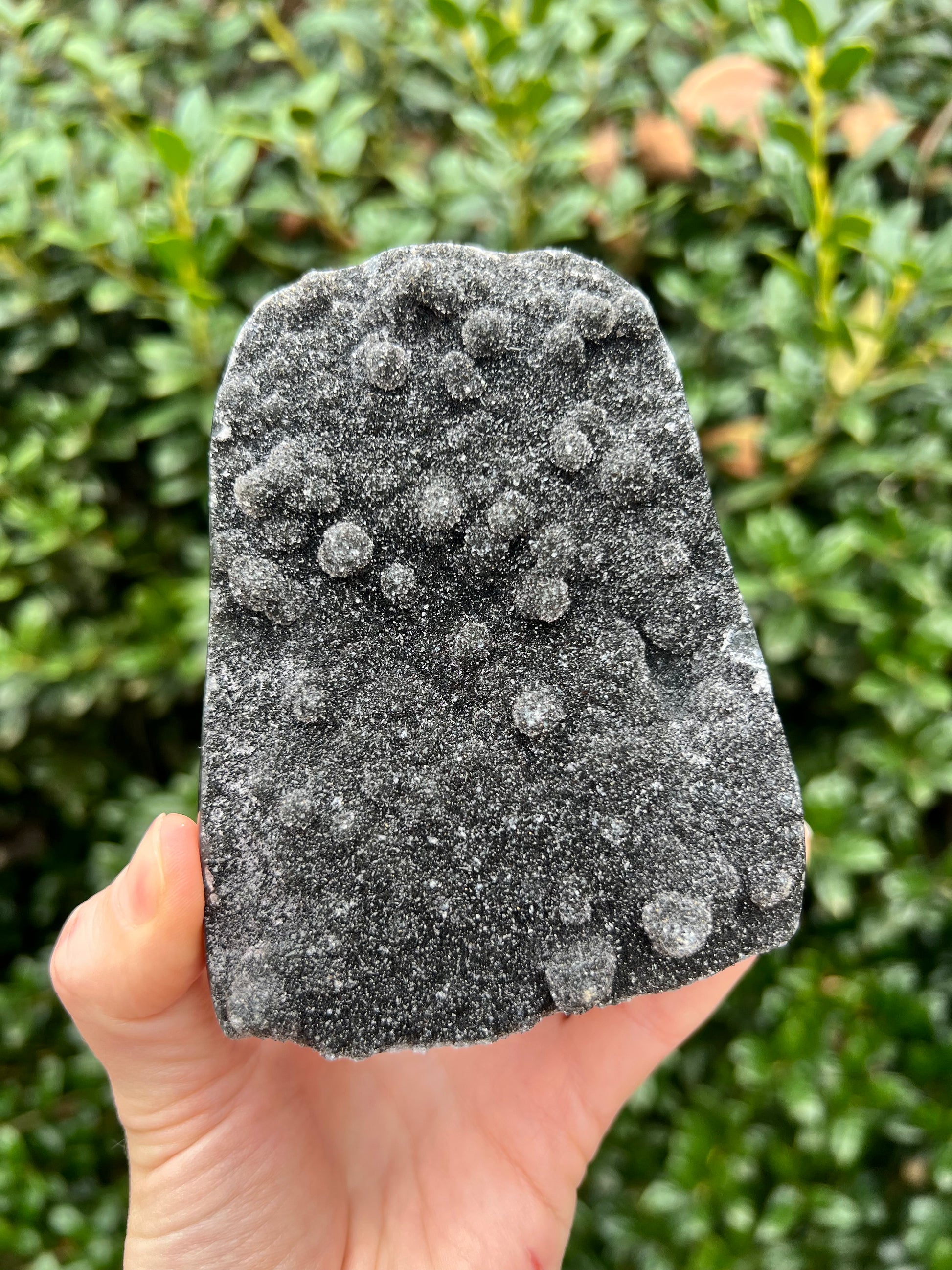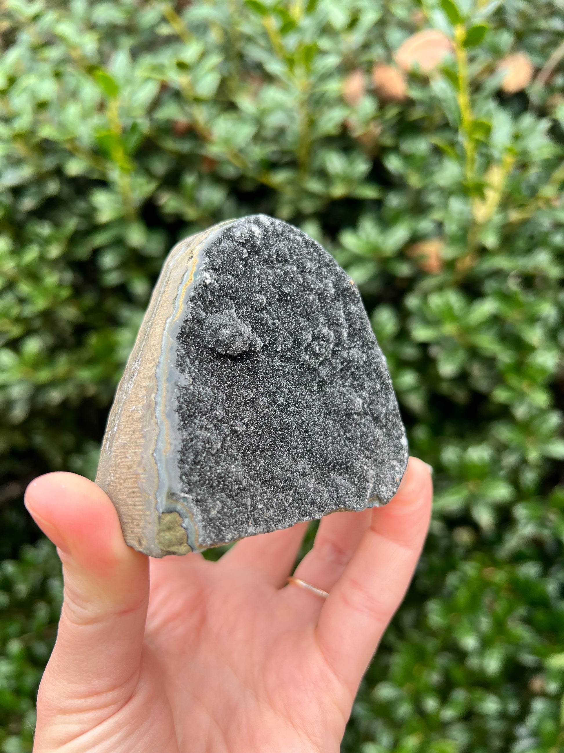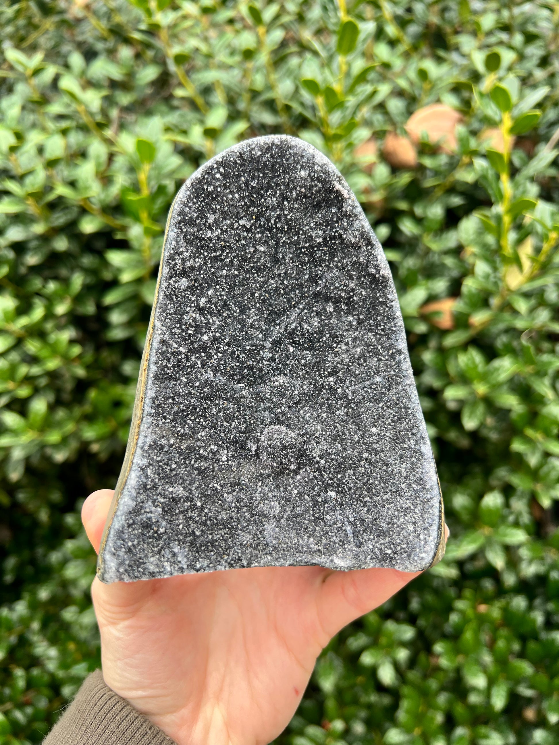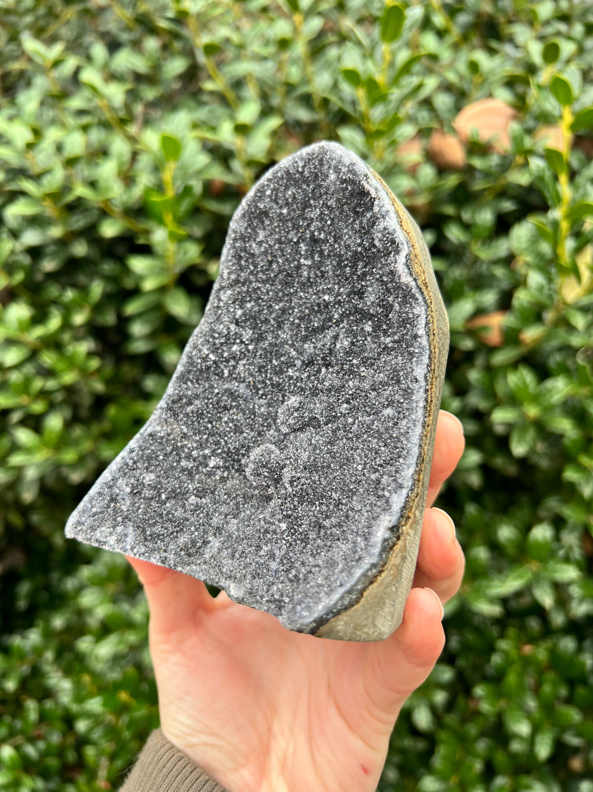 These stunning Black Amethyst Cut Bases are exquisite creations of Nature! They are perfect for healing home decor! This Black Amethyst comes from Brazil, which is known for its abundant Amethyst deposits. Amethyst is regarded as a powerful healer of emotional and spiritual wounds. It is known to promote relaxation and balance, helping to alleviate stress and anxiety. Black Amethyst is genuine Amethyst with higher levels of Hematite and Iron inclusions, resulting in its black color. These inclusions bring protective and shielding energy to the stone. Recenter and heal your energy with our Black Amethyst Cut Bases!