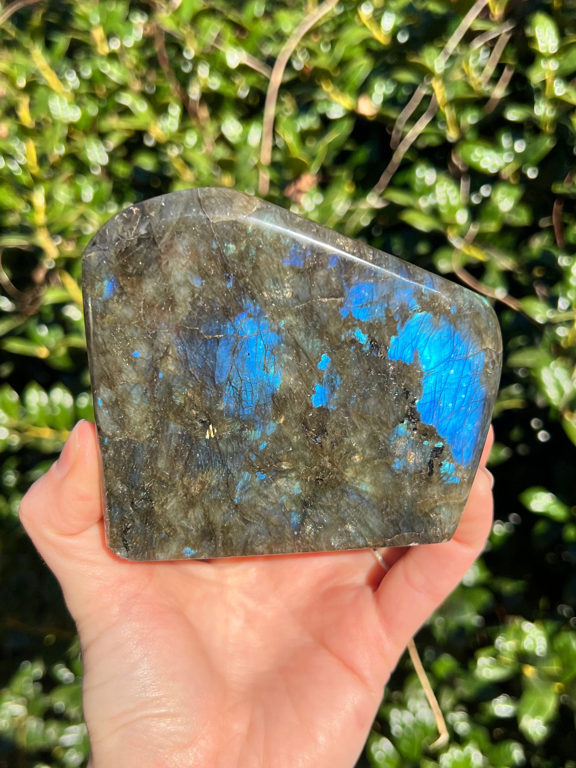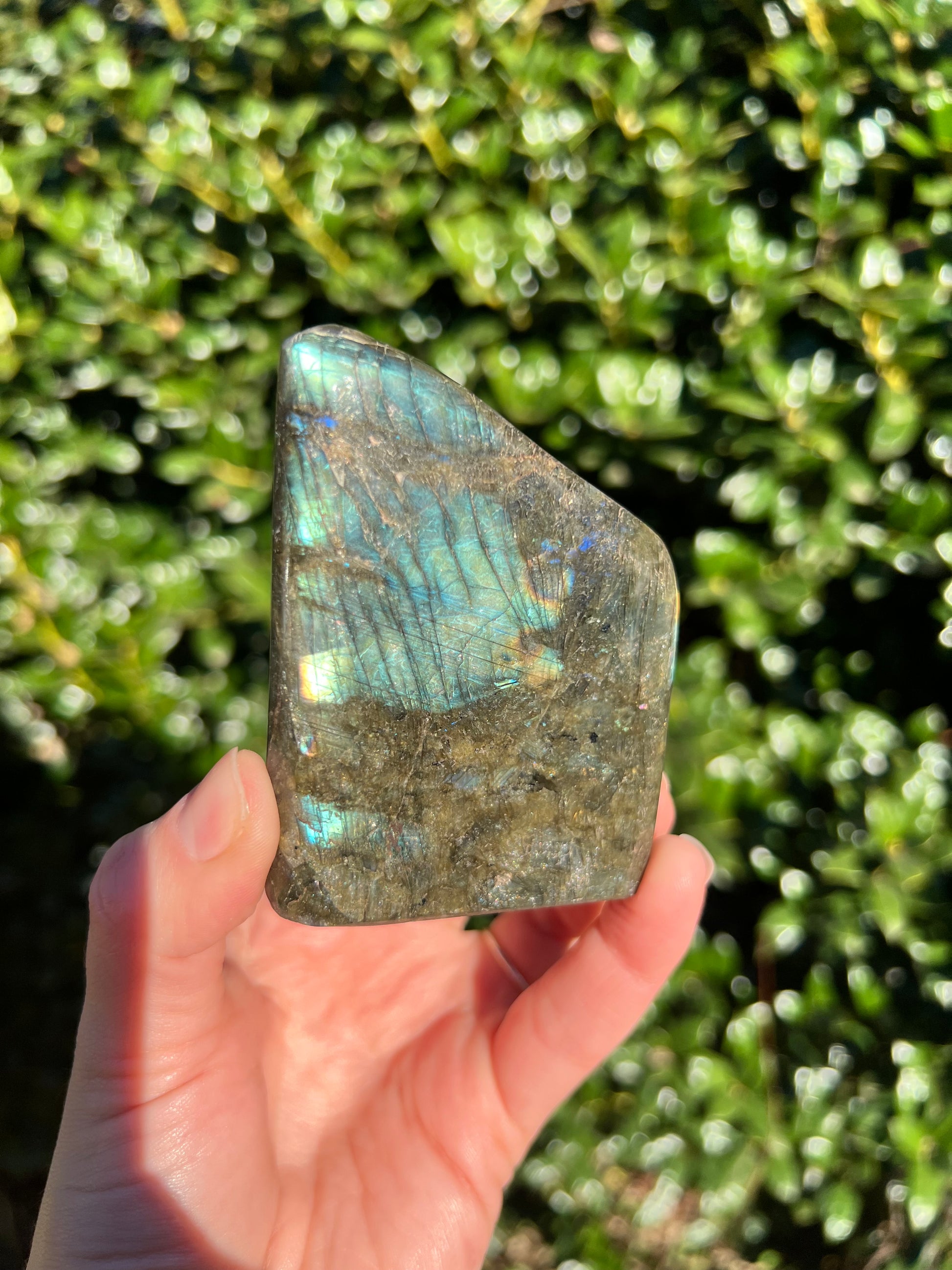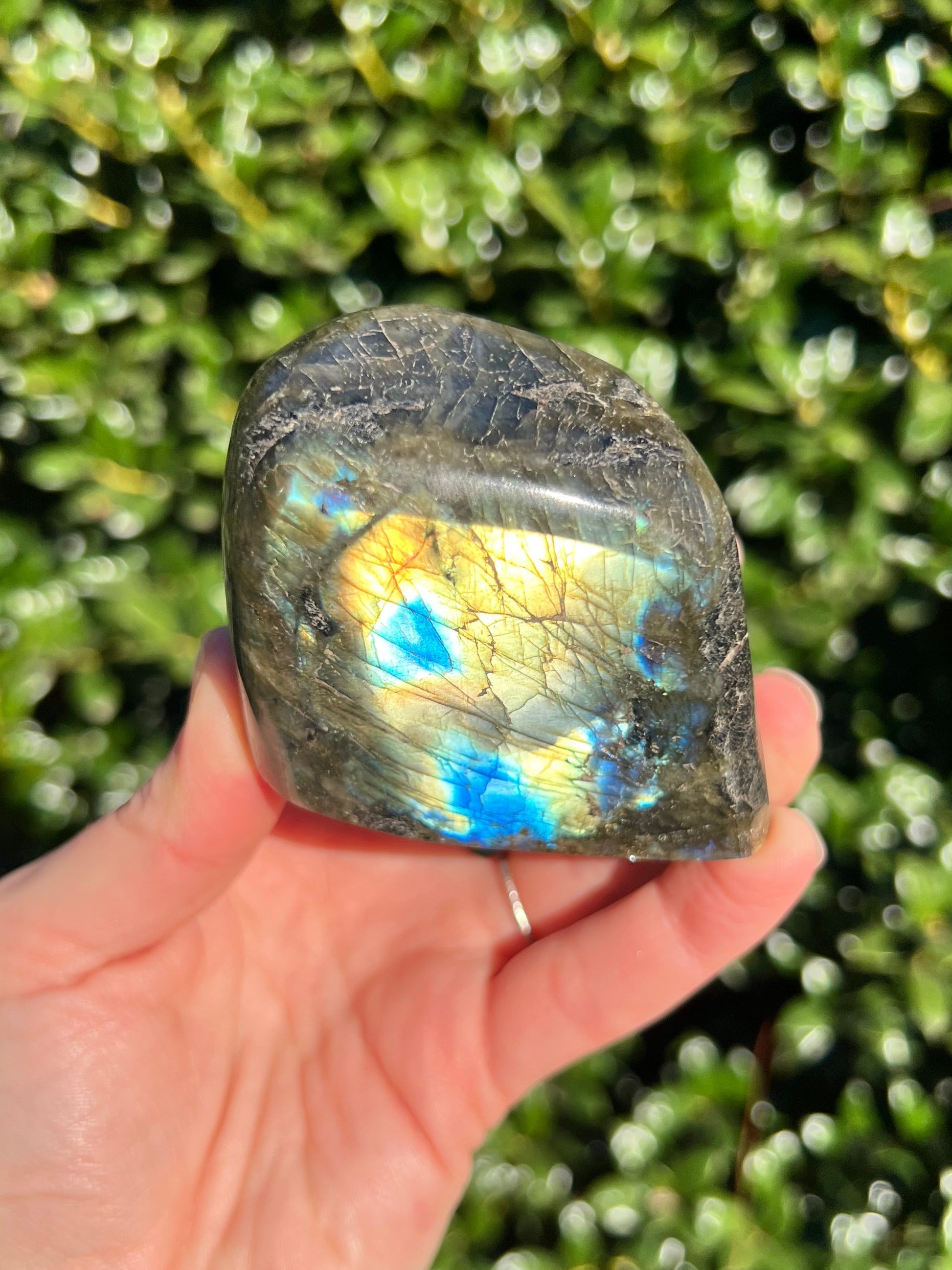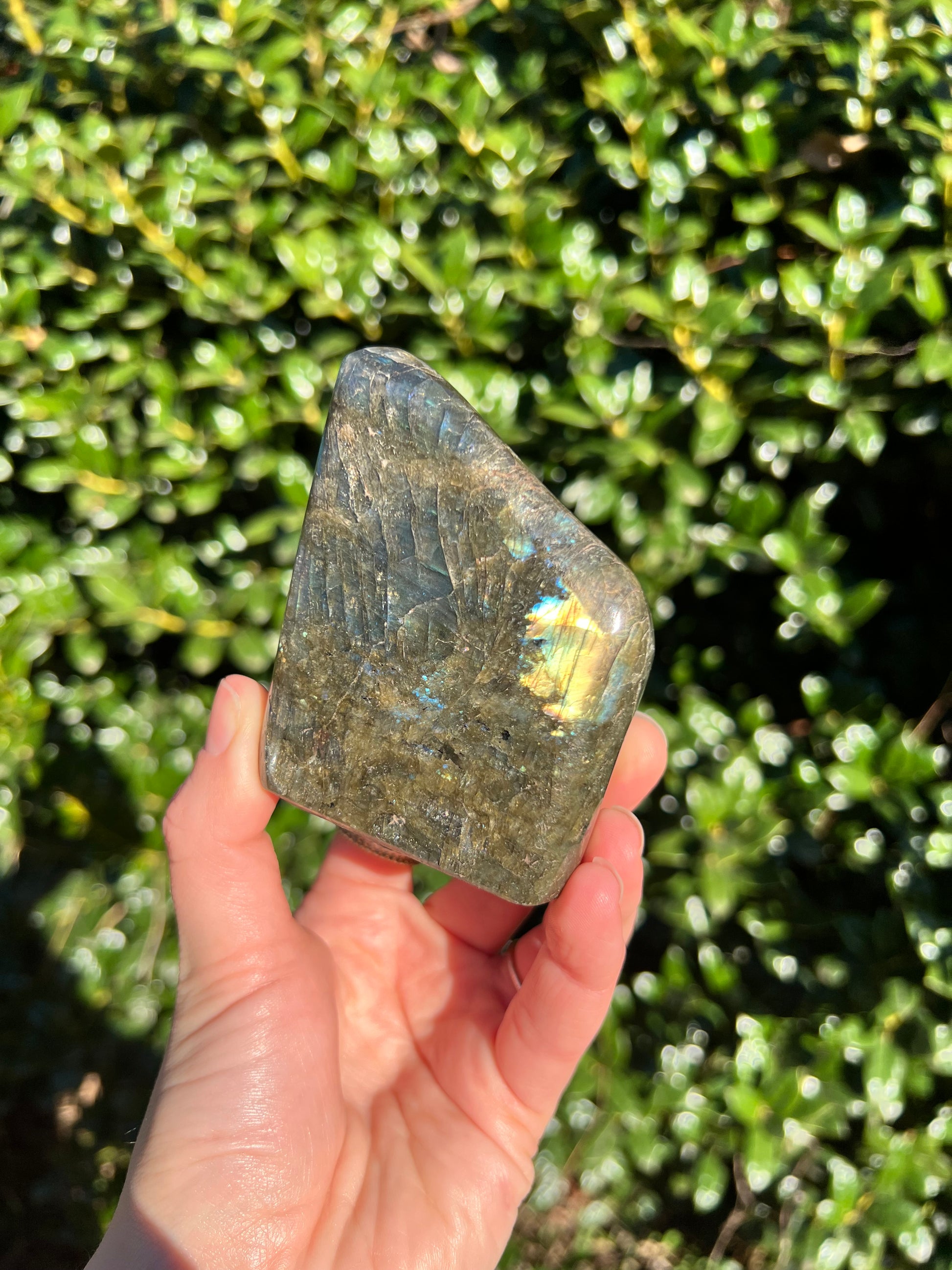 Look at these breathtaking Labradorite Cut Bases! Labradorite is a stone in the Feldspar mineral family. According to Inuit legend, the Northern Lights, or Aurora Borealis, were once trapped within the Earth. An Inuit warrior was mesmerized by what he saw and he struck the Earth with his spear, releasing the lights into the sky. According to the legend, part of the Aurora's magic stayed in the Earth, the stone that is now called the Labradorite. This gemstone not only has beautiful appearance, but a beautiful back story! Metaphysically speaking, Labradorite is known to enhance one's intuition and strengthen your inner power. Its known for increasing one's access to their psychic abilities and providing strong psychic protection as you explore these abilities. These Labradorite Cut Bases, will bring a beautiful dose of magic into your home! These cut bases are perfect to have near by during meditation, to use in healing practices, or as a majestic decor piece.