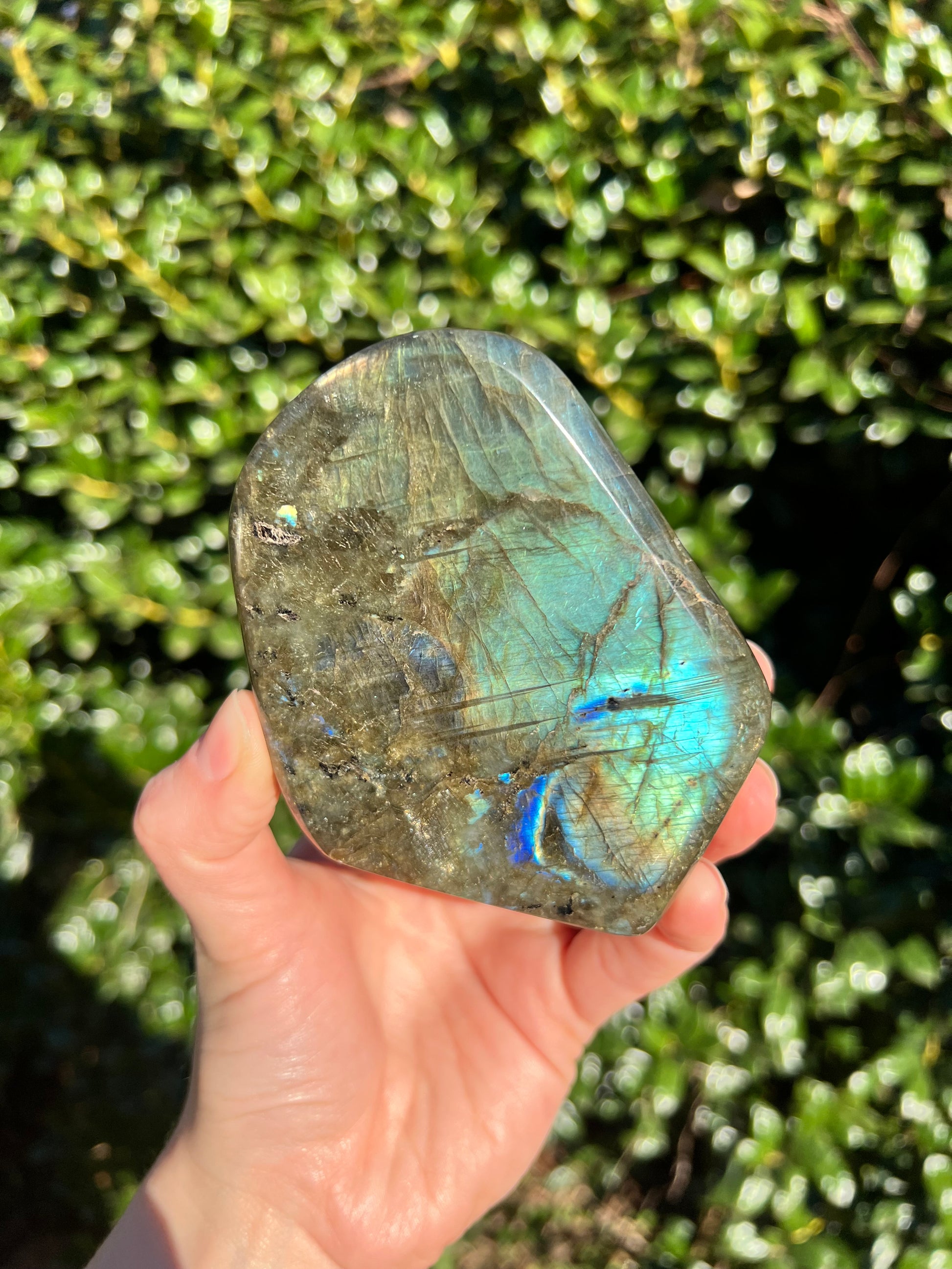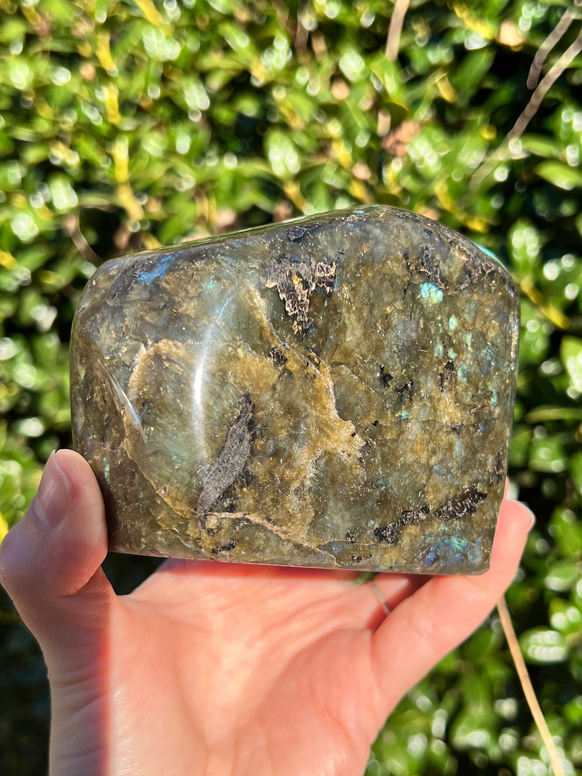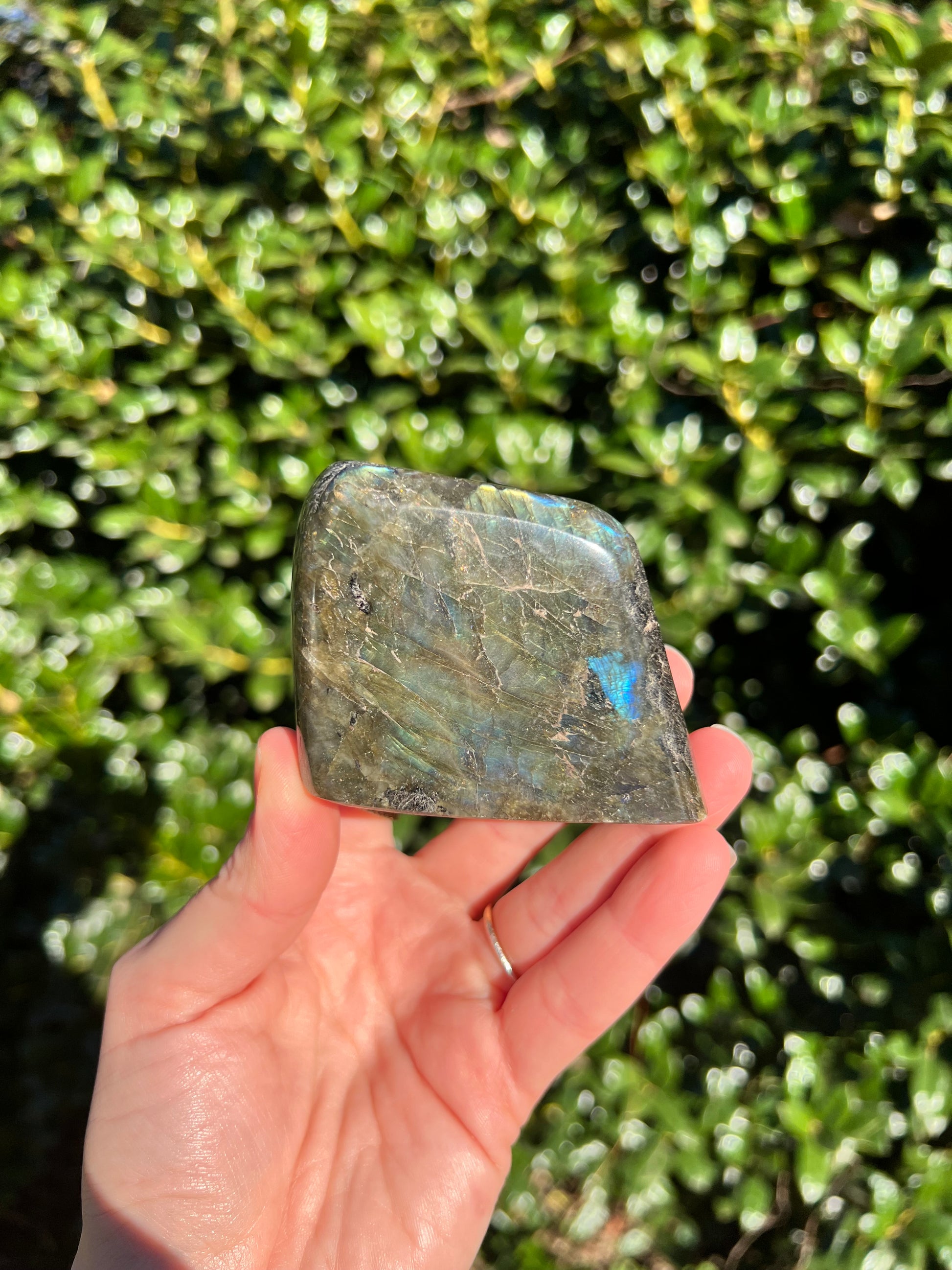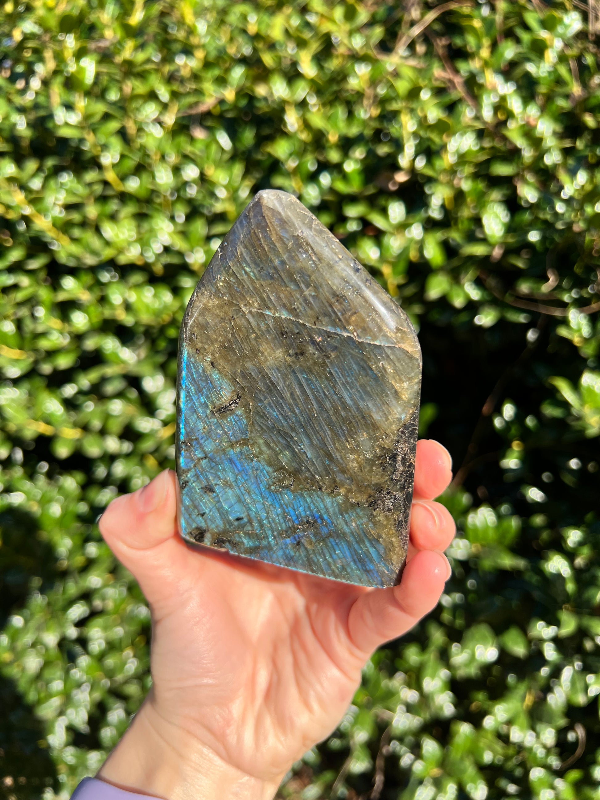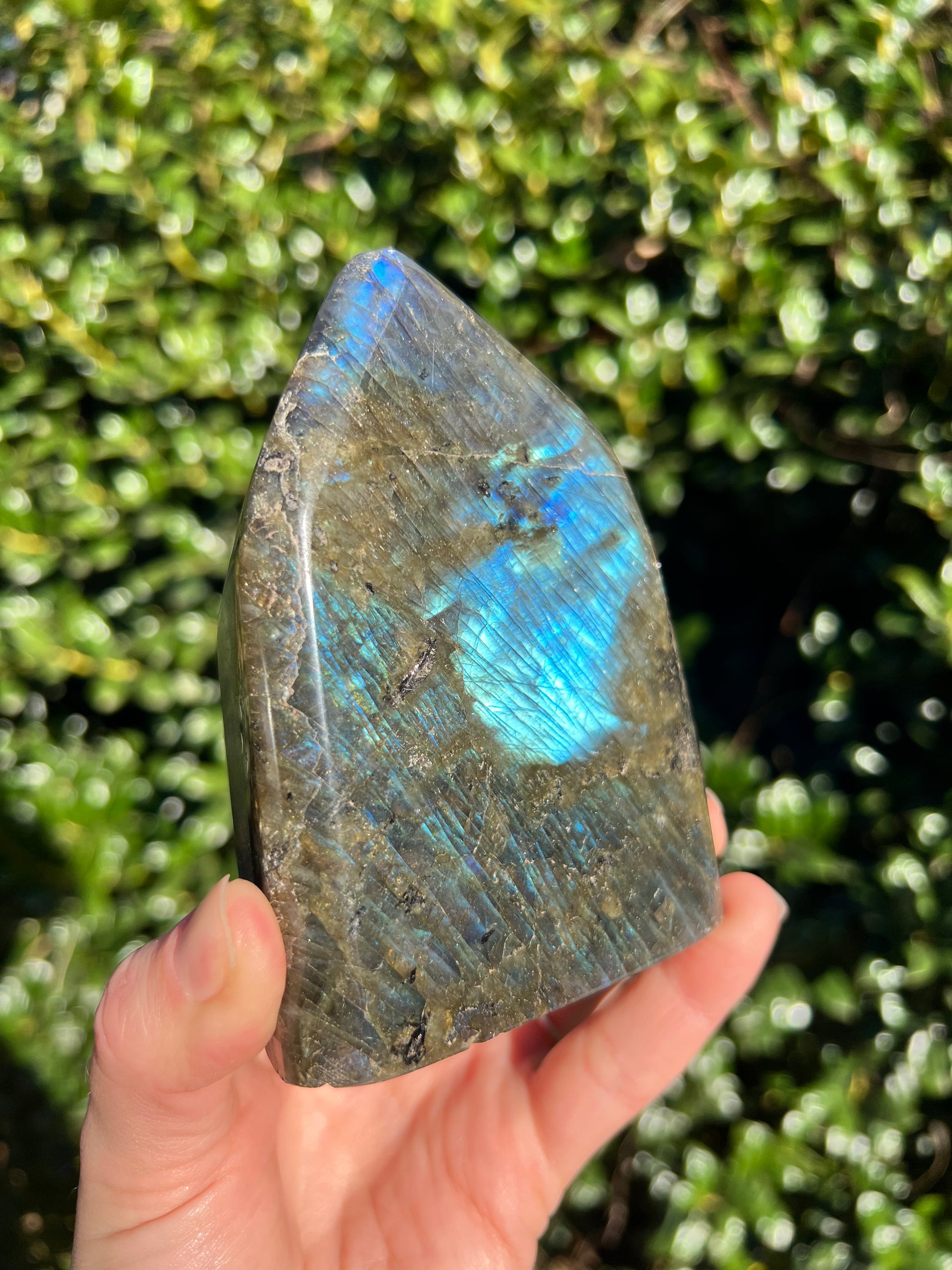 Look at these breathtaking Labradorite Cut Bases! Labradorite is a stone in the Feldspar mineral family. According to Inuit legend, the Northern Lights, or Aurora Borealis, were once trapped within the Earth. An Inuit warrior was mesmerized by what he saw and he struck the Earth with his spear, releasing the lights into the sky. According to the legend, part of the Aurora's magic stayed in the Earth, the stone that is now called the Labradorite. This gemstone not only has beautiful appearance, but a beautiful back story! Metaphysically speaking, Labradorite is known to enhance one's intuition and strengthen your inner power. Its known for increasing one's access to their psychic abilities and providing strong psychic protection as you explore these abilities. These Labradorite Cut Bases, will bring a beautiful dose of magic into your home! These cut bases are perfect to have near by during meditation, to use in healing practices, or as a majestic decor piece.