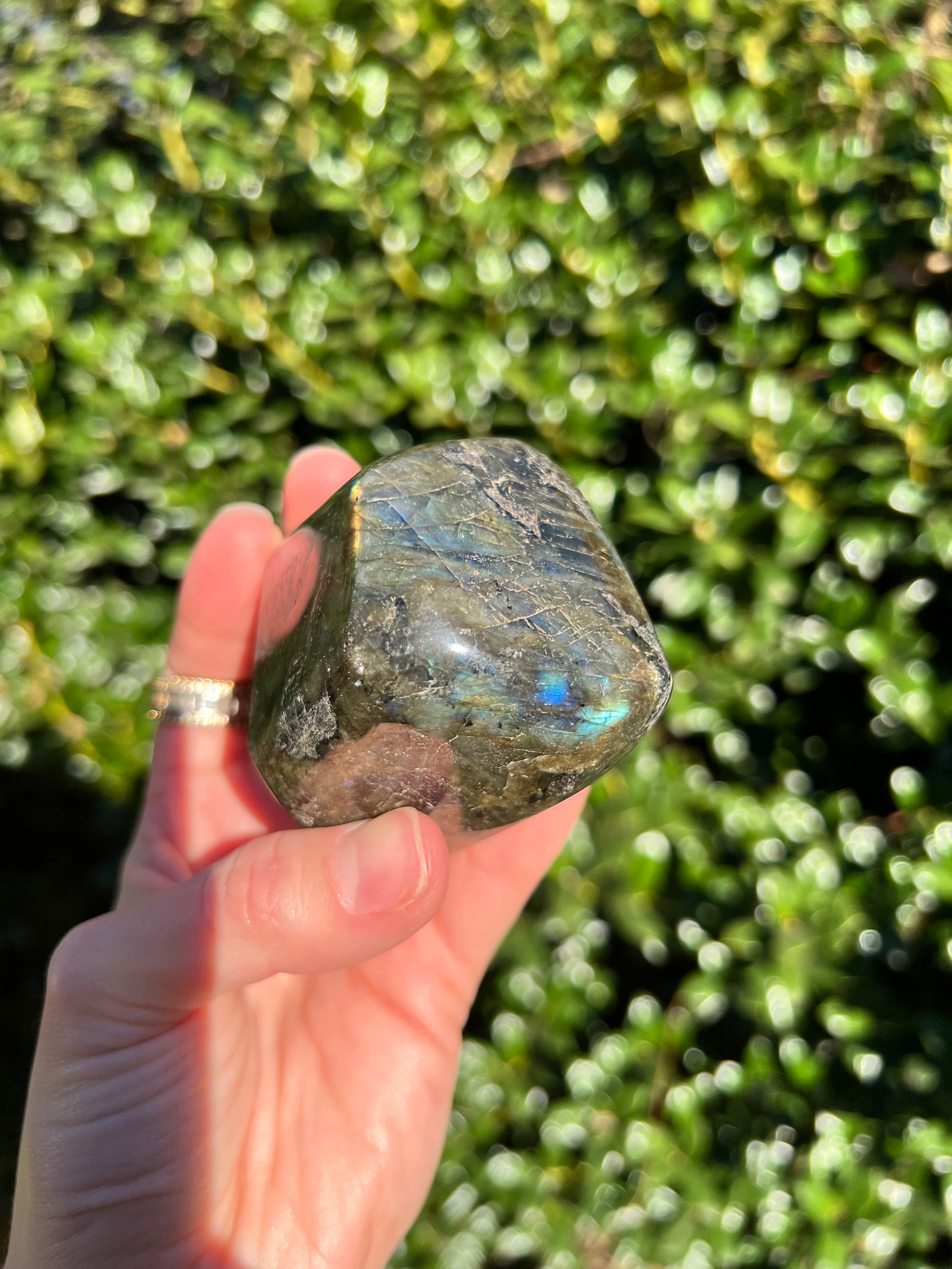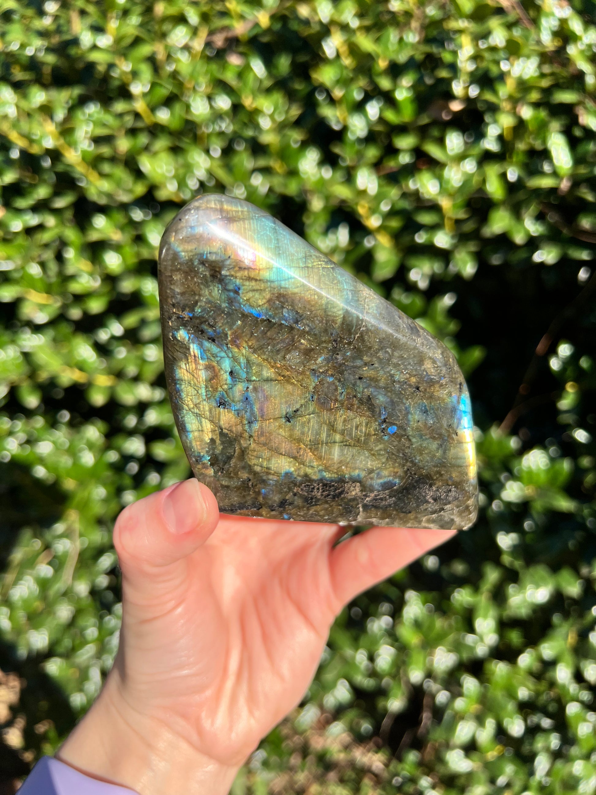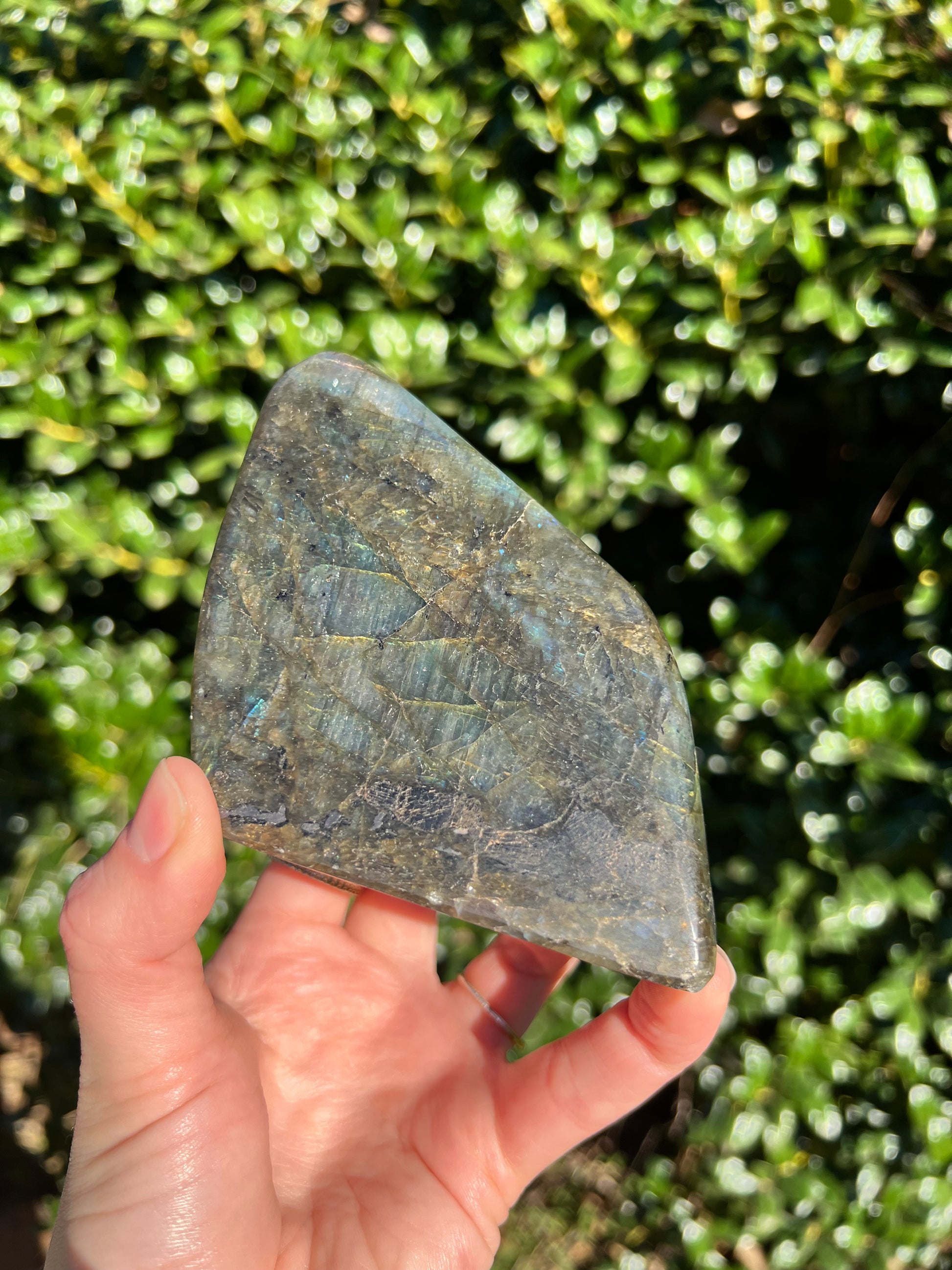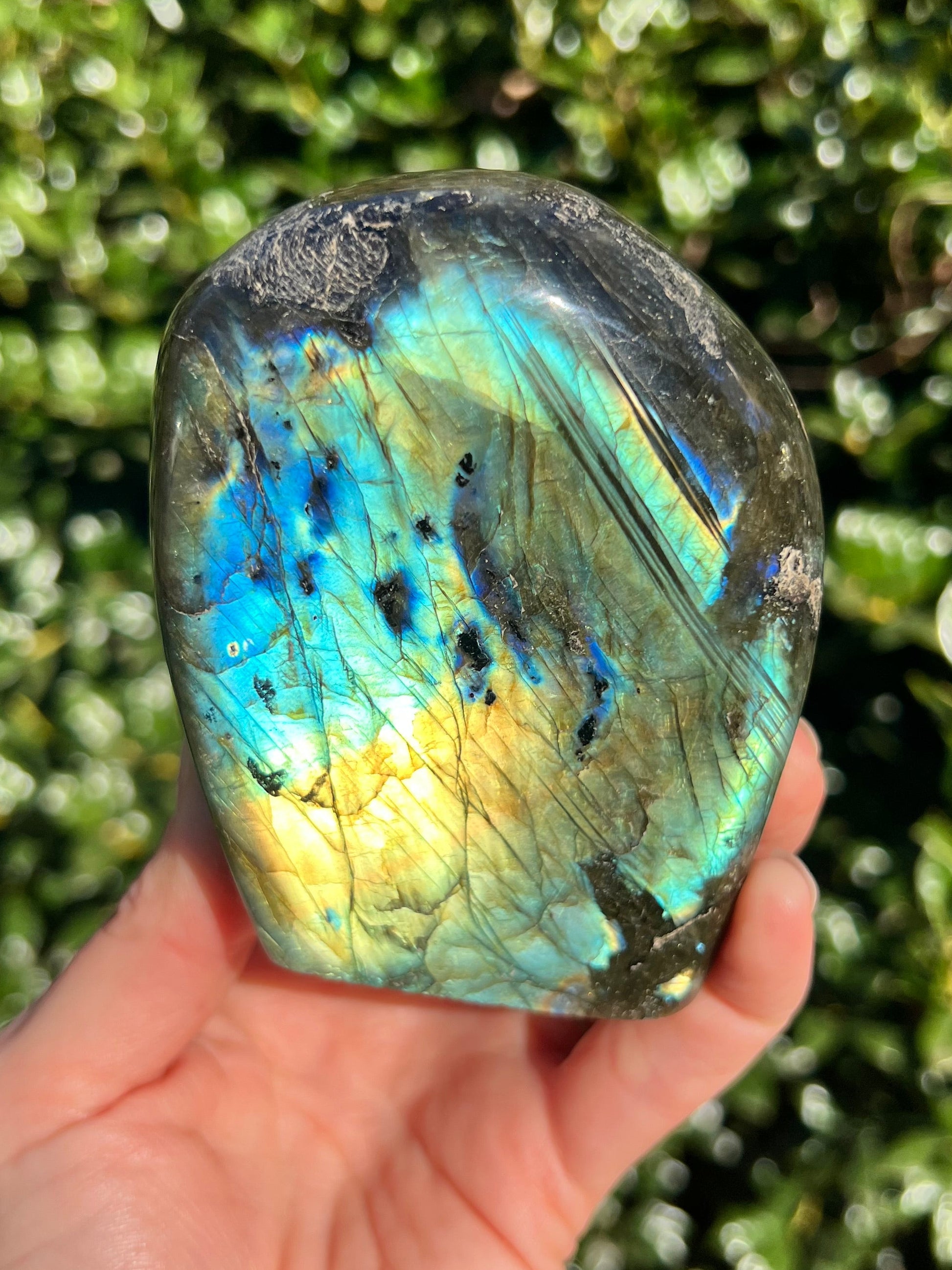Look at these breathtaking Labradorite Cut Bases! Labradorite is a stone in the Feldspar mineral family. According to Inuit legend, the Northern Lights, or Aurora Borealis, were once trapped within the Earth. An Inuit warrior was mesmerized by what he saw and he struck the Earth with his spear, releasing the lights into the sky. According to the legend, part of the Aurora's magic stayed in the Earth, the stone that is now called the Labradorite. This gemstone not only has beautiful appearance, but a beautiful back story! Metaphysically speaking, Labradorite is known to enhance one's intuition and strengthen your inner power. Its known for increasing one's access to their psychic abilities and providing strong psychic protection as you explore these abilities. These Labradorite Cut Bases, will bring a beautiful dose of magic into your home! These cut bases are perfect to have near by during meditation, to use in healing practices, or as a majestic decor piece.