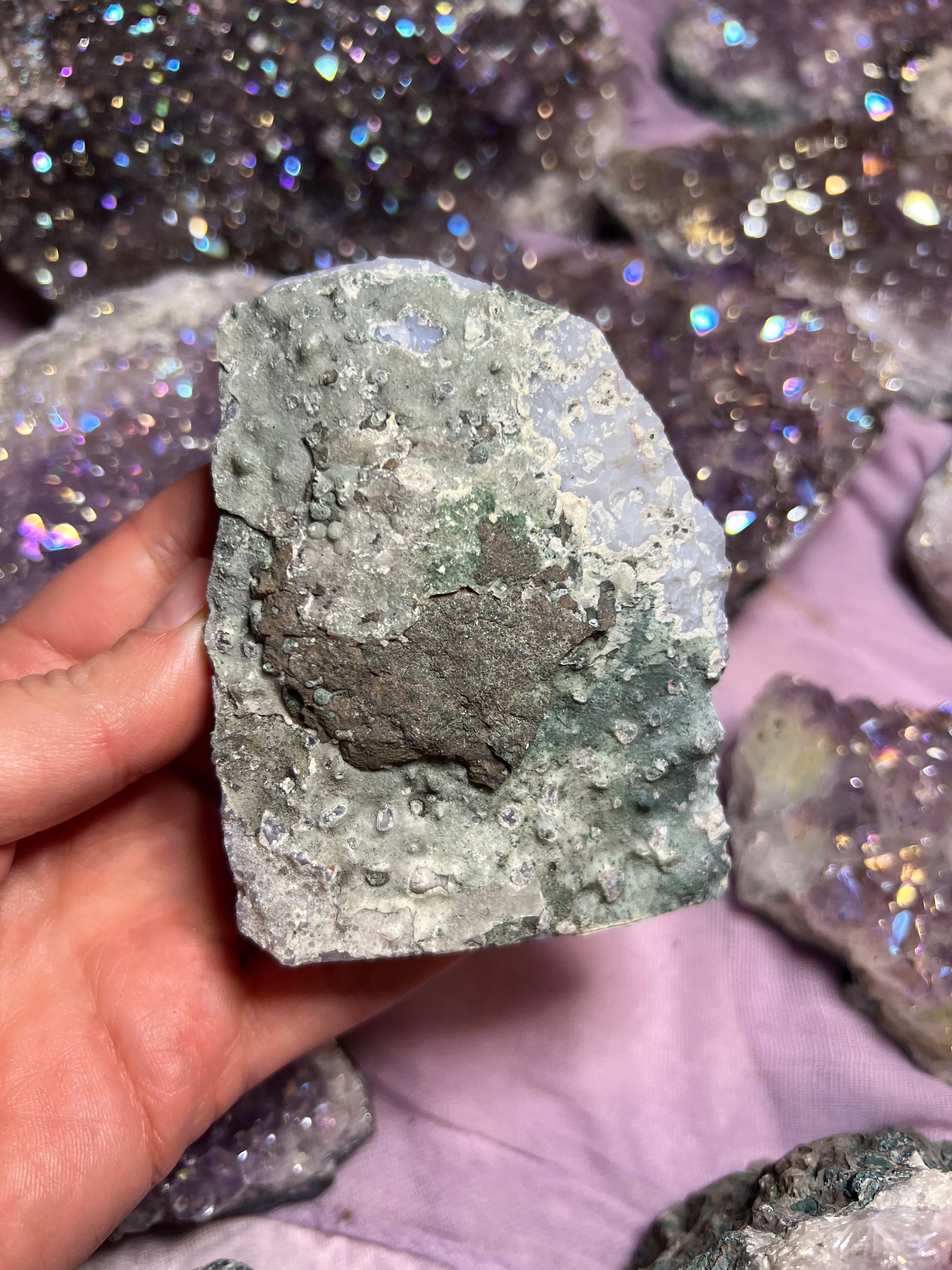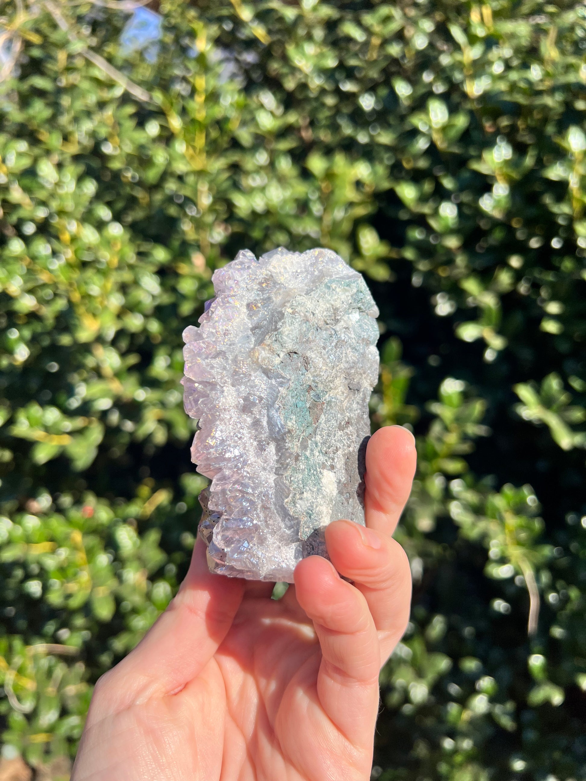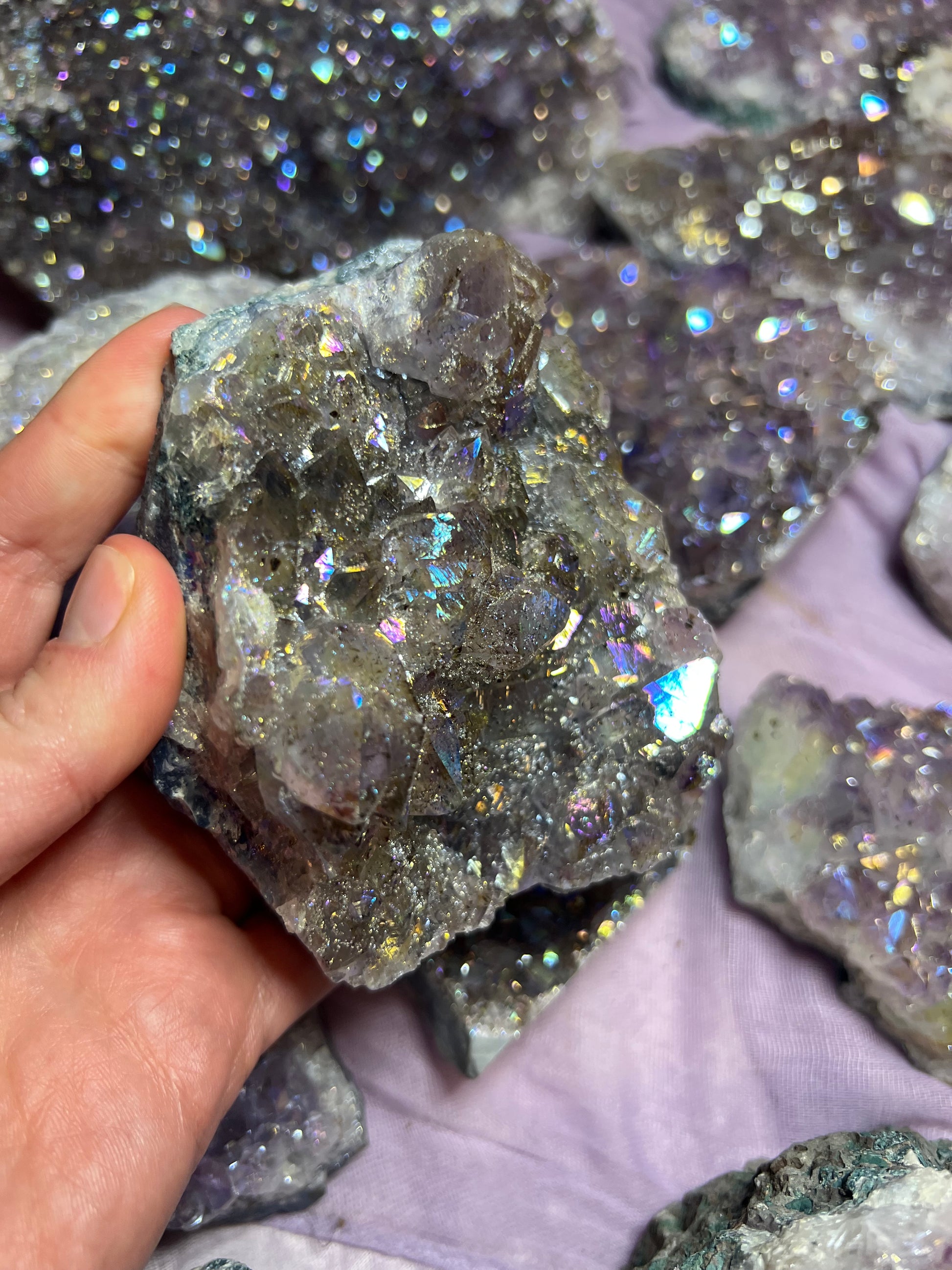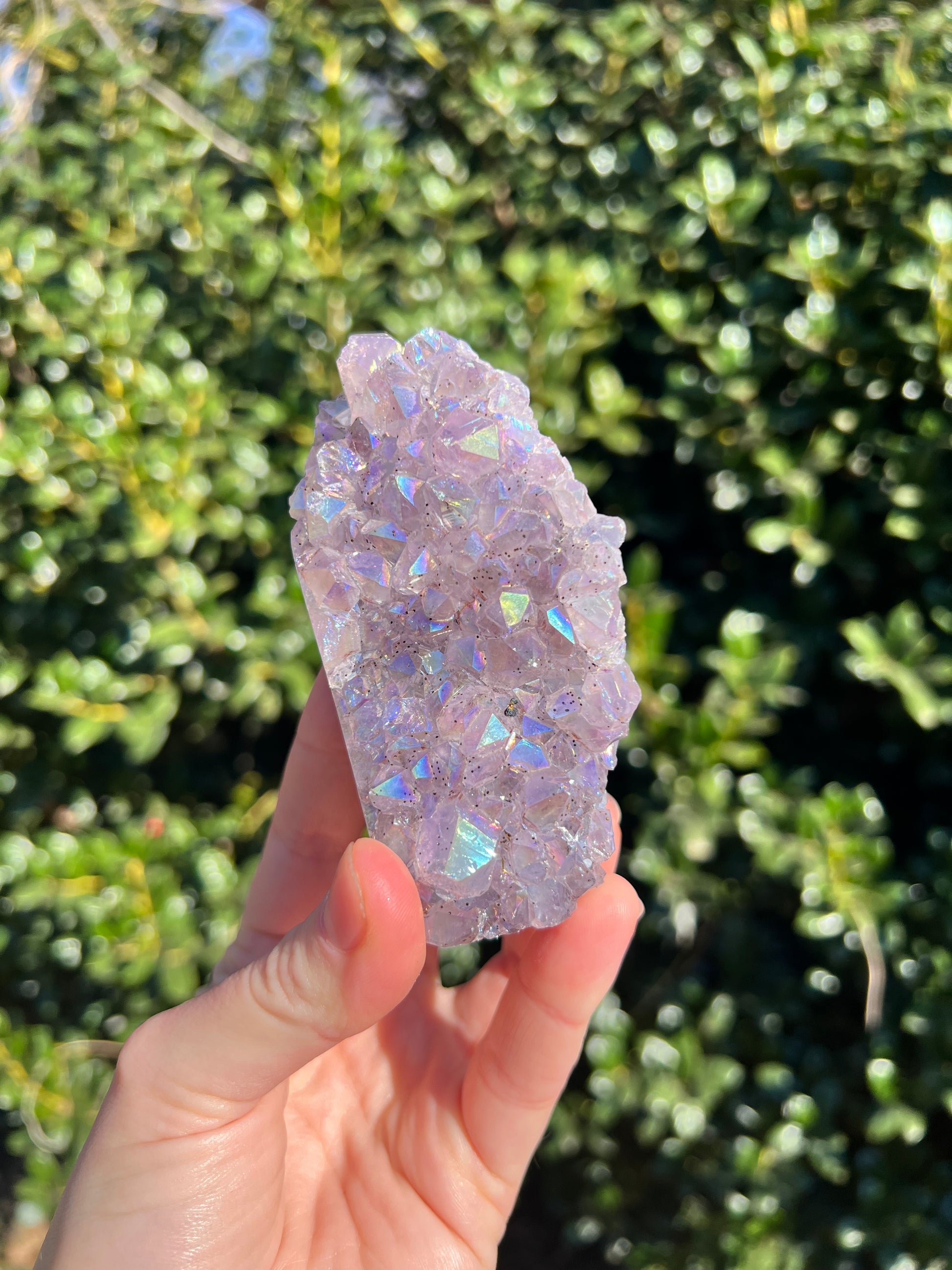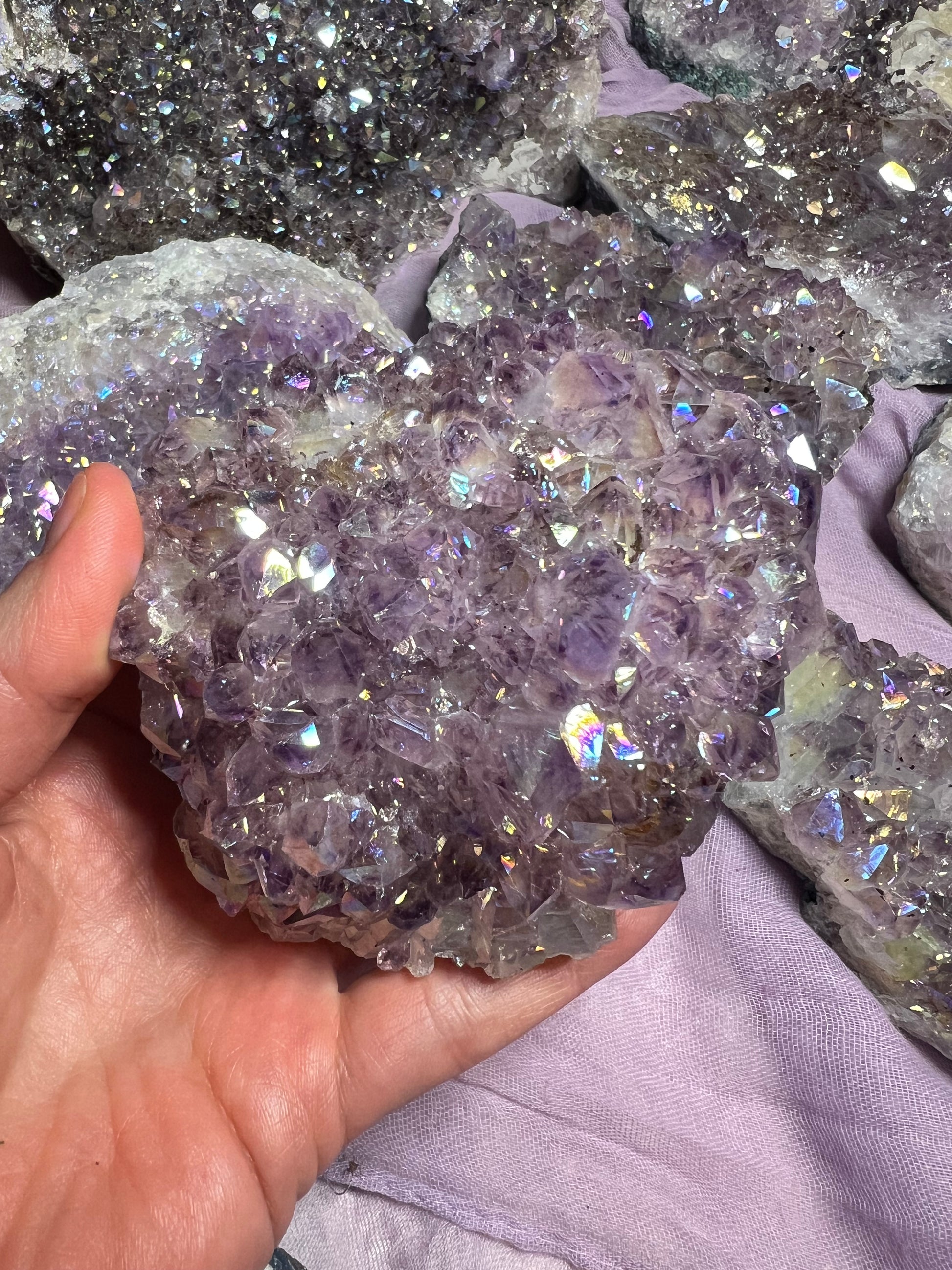 天使光环紫水晶以其独特的彩虹色外观而闻名,以一种格外神奇的方式捕捉光线!该标本由天然紫水晶(产自巴西)制成,用铂、金和银等金属混合物处理,然后经过极热处理。这一过程创造了天使光环紫水晶的彩虹色光芒,并增强了这块宝石的力量。