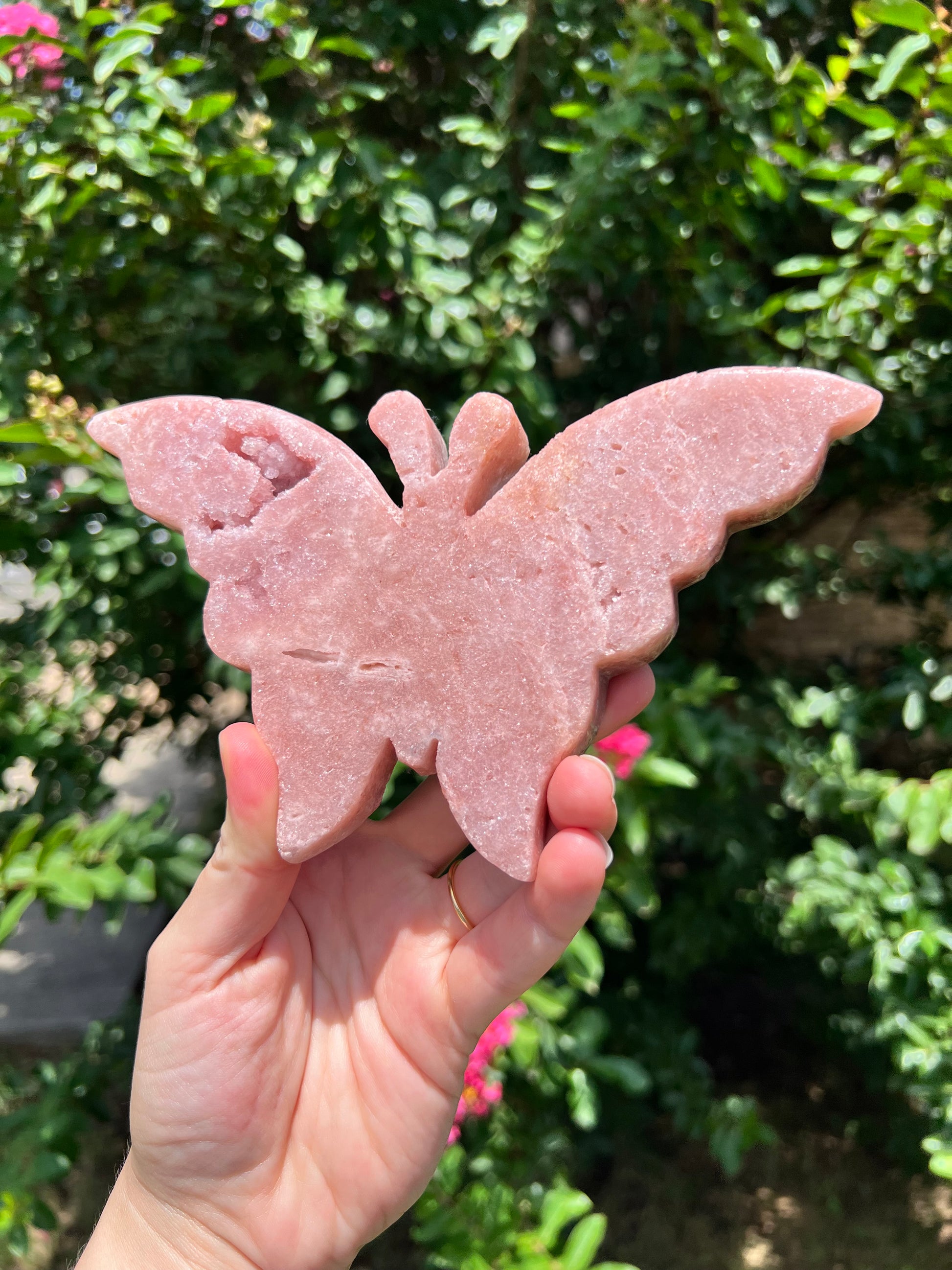 感受我们粉红紫水晶蝴蝶的宁静爱意!与传统紫水晶一样,粉红紫水晶是一种疗愈石。粉红色调表明其专注于疗愈和打开心轮。紫水晶中的铁元素(导致其呈现粉红色调)含有激活根轮的接地能量。这些小雕像手工雕刻成美丽的蝴蝶形状,是送给任何水晶爱好者的完美礼物!