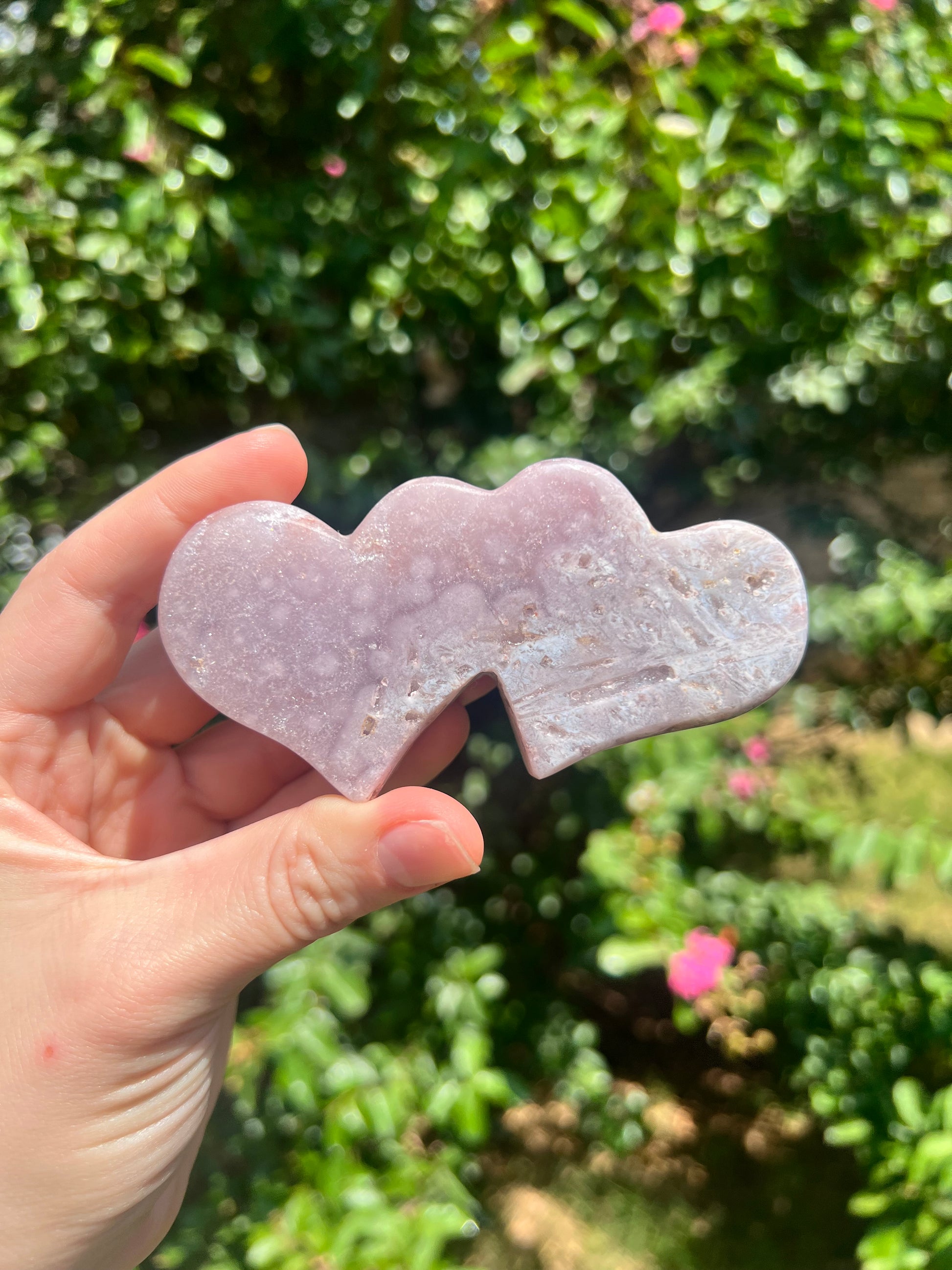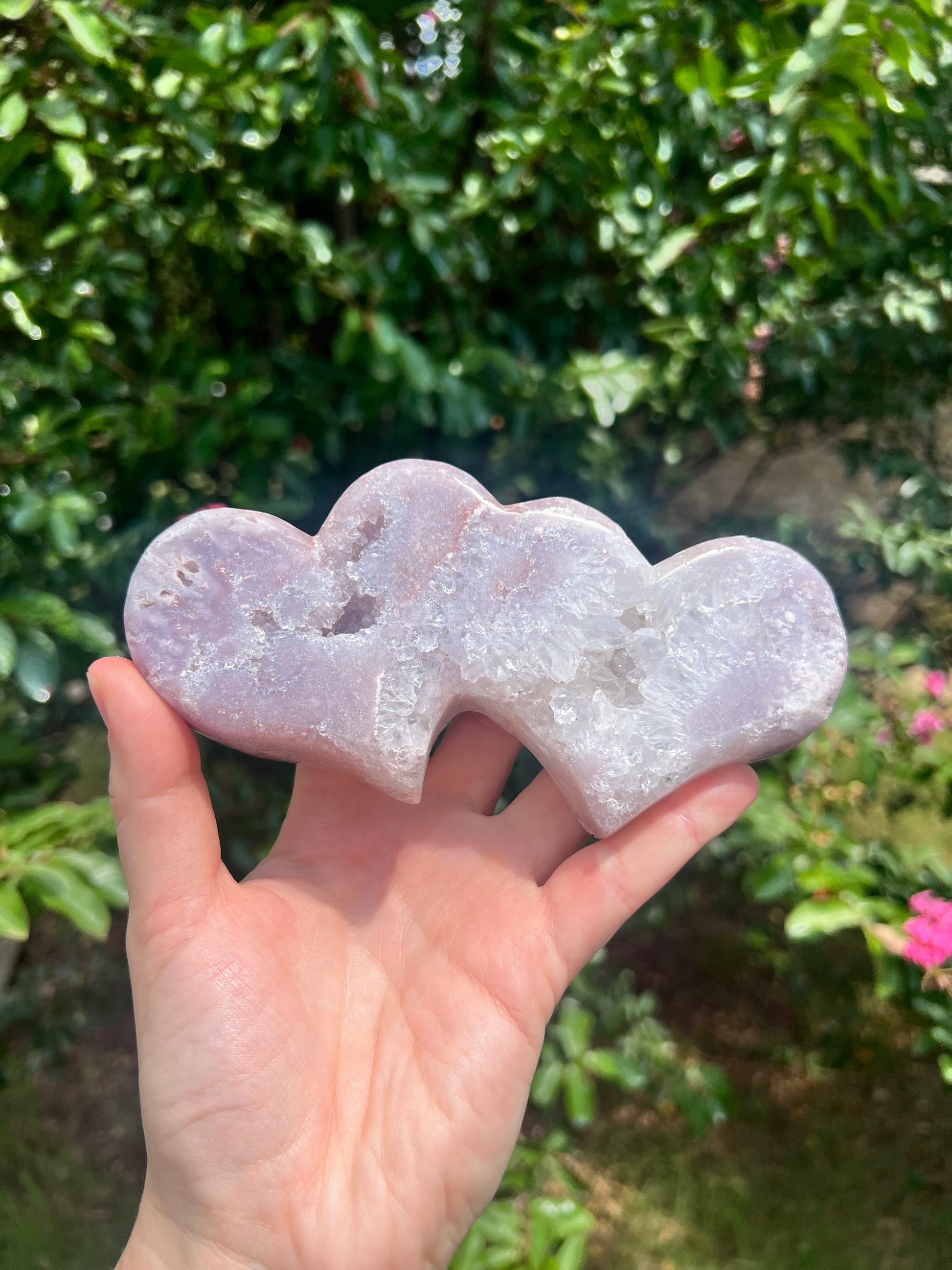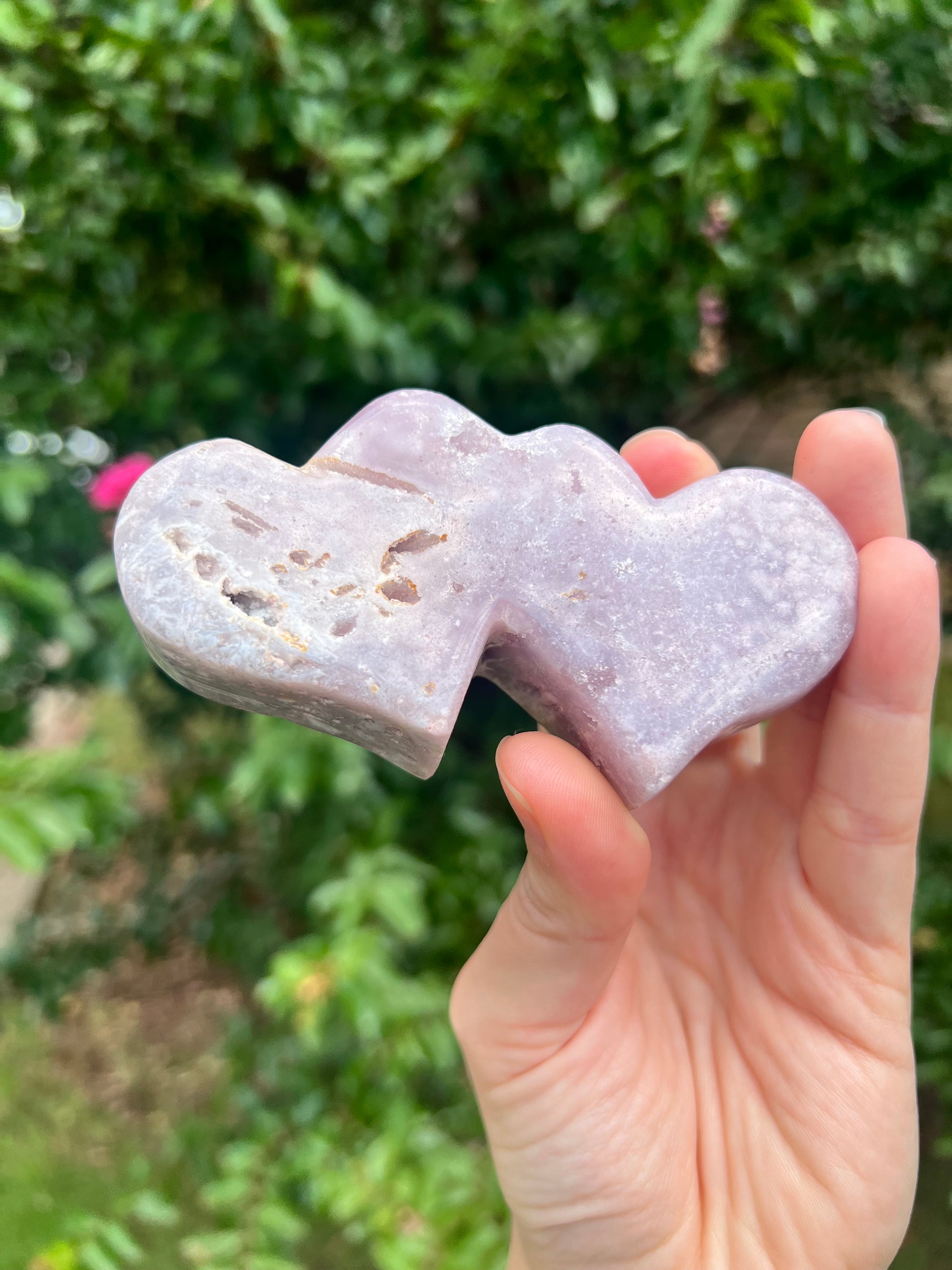Experience the serene loving energy of Pink Amethyst! Like Amethyst, Pink Amethyst is a healing stone. The pink hue signals its focus on healing and opening the heart chakra. The iron within the stone, which causes the pink hue, contains grounding energy that activates the root chakra. The beautiful Double Heart shape symbolizes the beauty of romantic love. These Double Hearts make the perfect gift for your "crystal lover" lover!